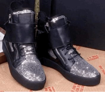 This version of the iconic Bedazzle model is as a work of art. Loyal to its legendary silhouette, these black sneakers with a rounded toe and back counter in calfskin leather, feature quarters crafted in crystals woven with Lurex threads. The model, trimmed in a black grosgrain piping finish, sports a high-top silhouette and a rubber sole as well as veau velours eyestays and collar.