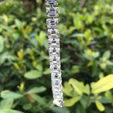 Take your jewelry game to the next level. Outshine everyone with true VVS clarity glistening like the sea around your neck. This is millionaire luxury status. Level up today. Our top quality colorless moissanite hits harder and outshines everything. They have more fire and brilliance than CZ and any other fake diamond. It has a hardness rating of 9.25 out of 10 and tests positive as a diamond on most handheld testers. Real natural diamond tennis chains cost anywhere from $20,000 - $50,000+ for larger stone versions. Get the exact same look with one of these chains!