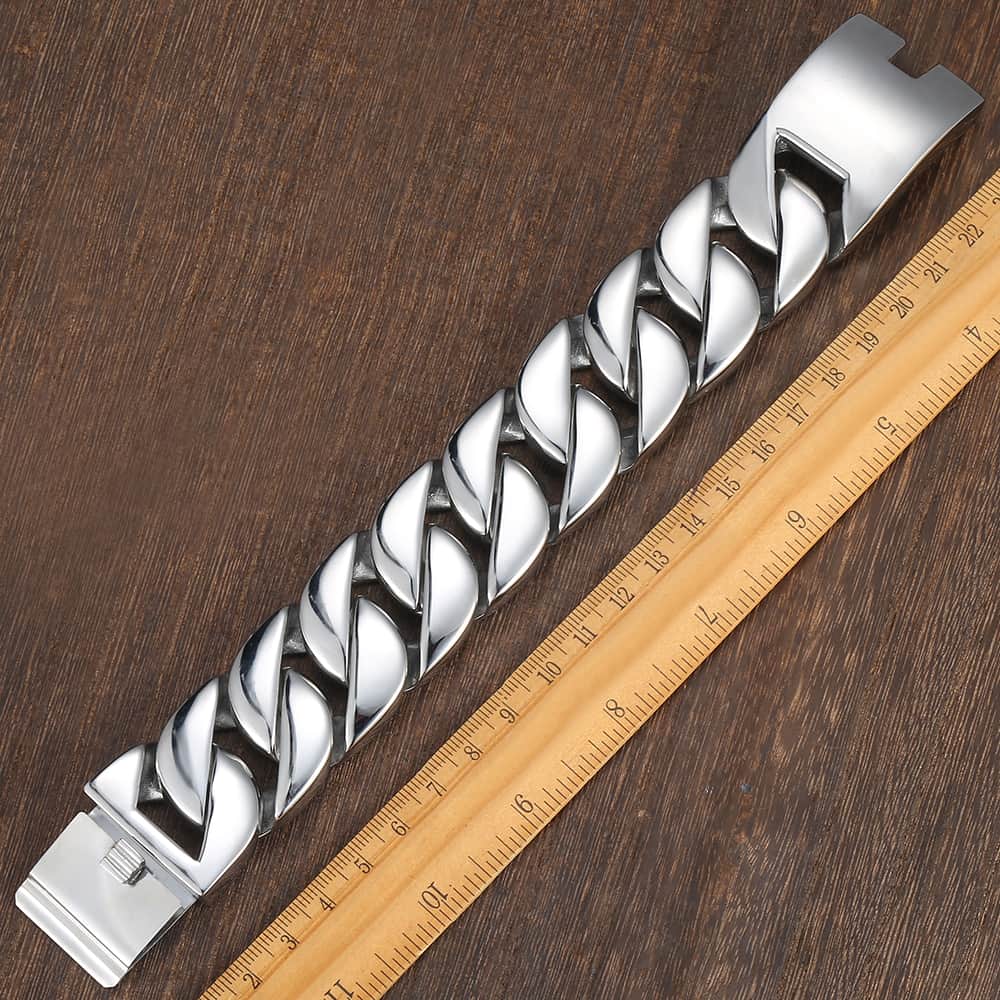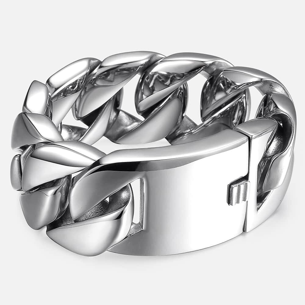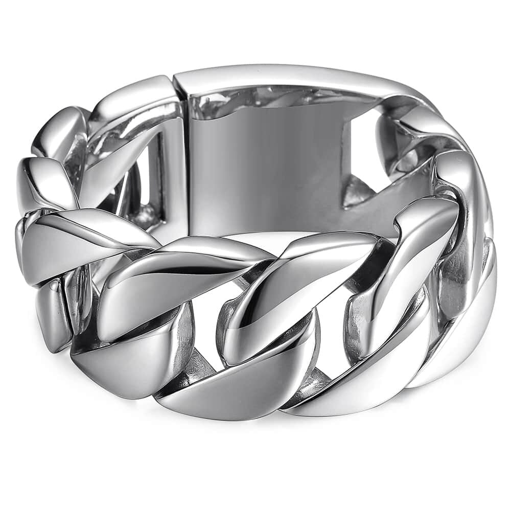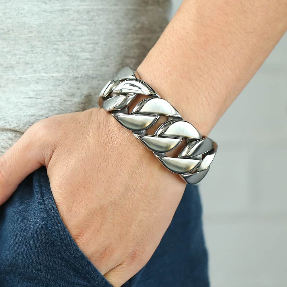 Cuban chain bracelet, 316L surgical grade Stainless Steel. Width:21 & 31 mm.