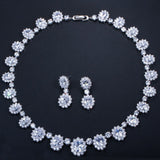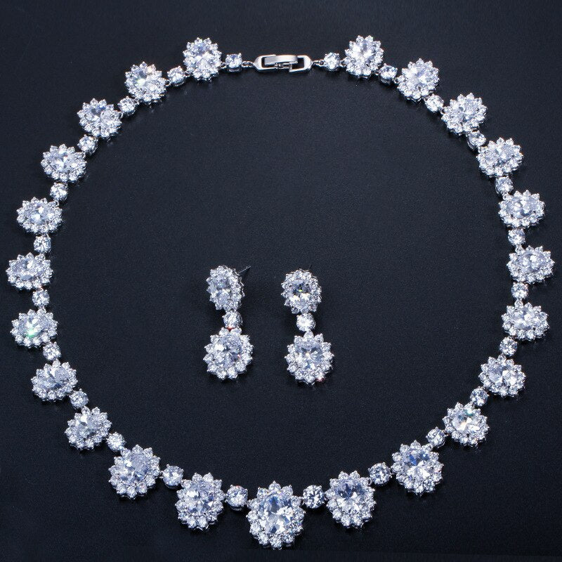 Elegant drop down earrings, necklace and bracelet with amazing shine. These stunning drop down earrings feature graduating stones and ends in a brilliant cut stone. They are made out of genuine 925 sterling silver, finished with a layer of rhodium to reduce tarnishing and give it the deep shine of white gold jewelry.