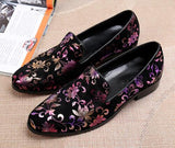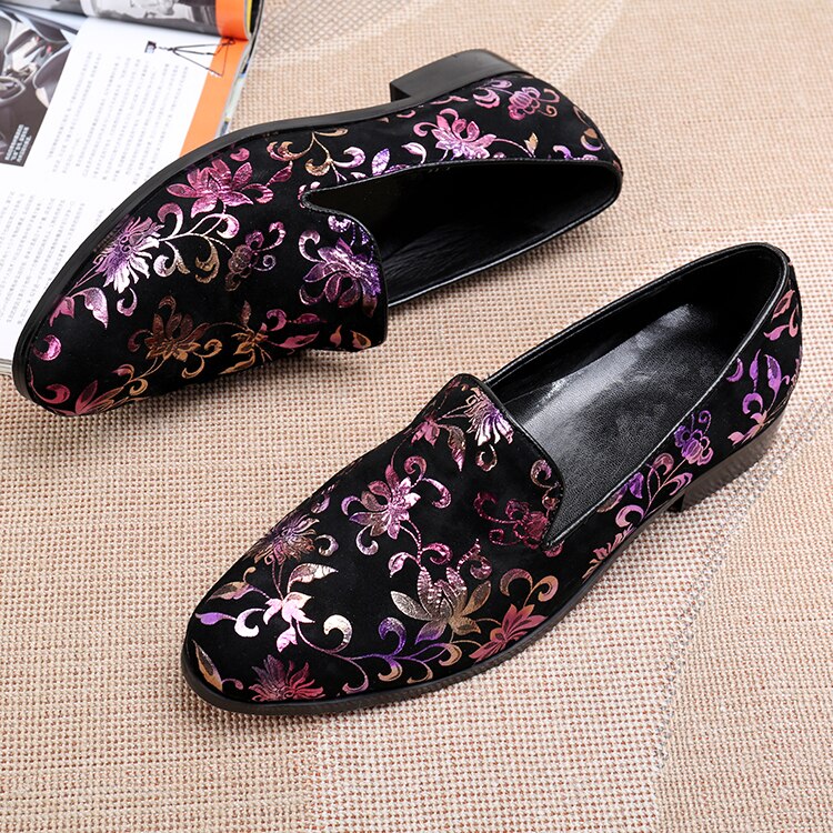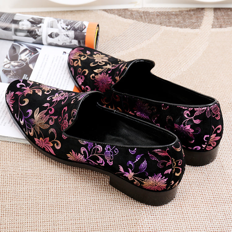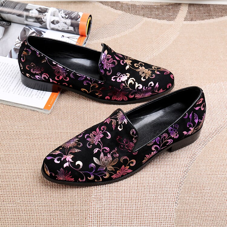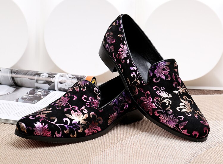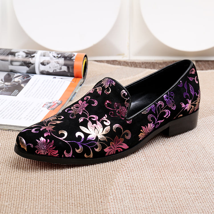 For all your special events these loafers are decorated with a flower extravaganza thoghout the mocassin. Leather piping on hems. A metal badge with the brand's lettering on the heel. Genuine leather sole. Leather lining.<p>
