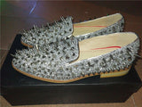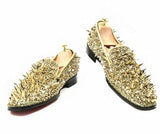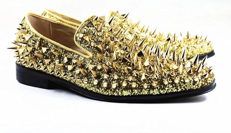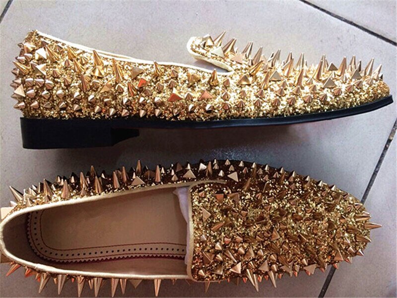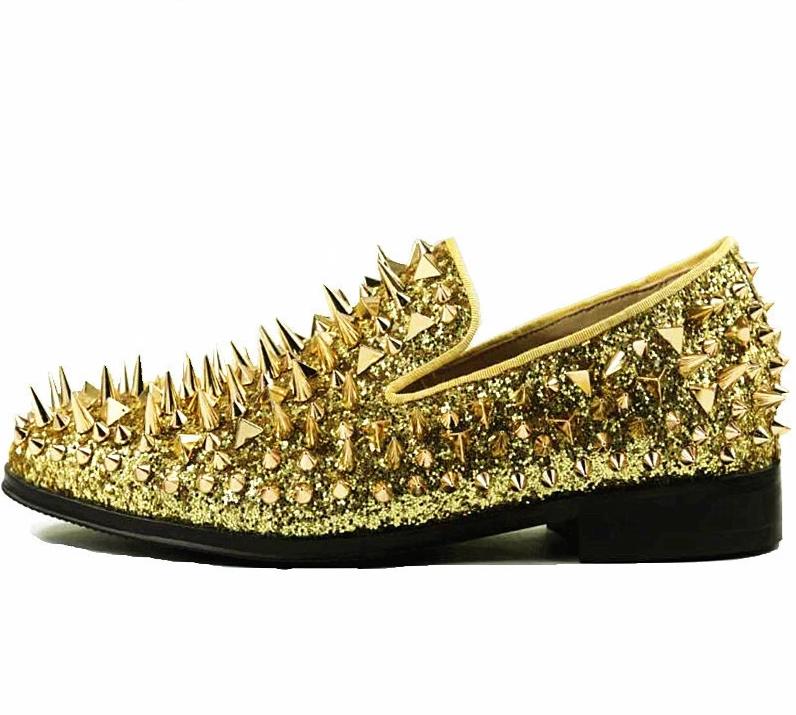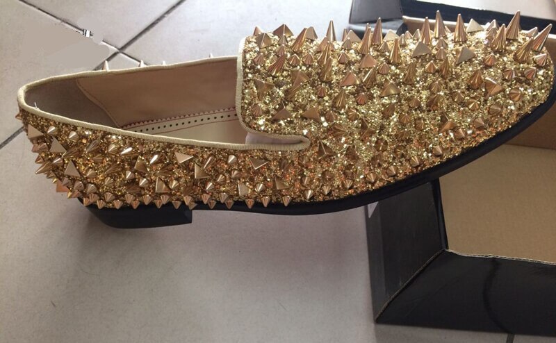 For all your special events these leather moccasins are decorated with an abundance of studs and sequins all over. Leather piping on hems. A metal badge with the brand's lettering on the heel. Genuine leather sole. Leather lining