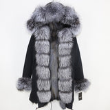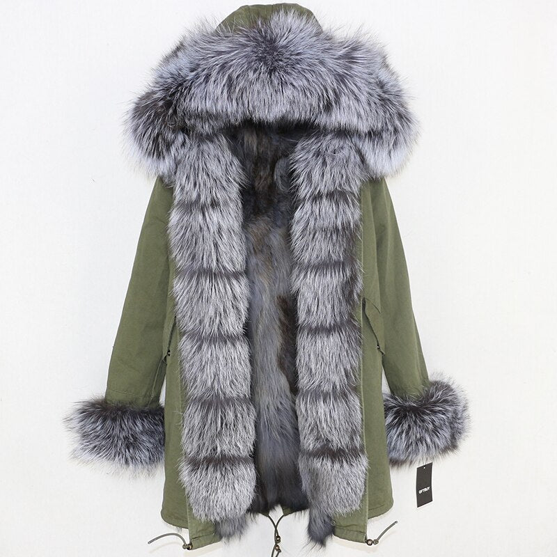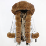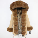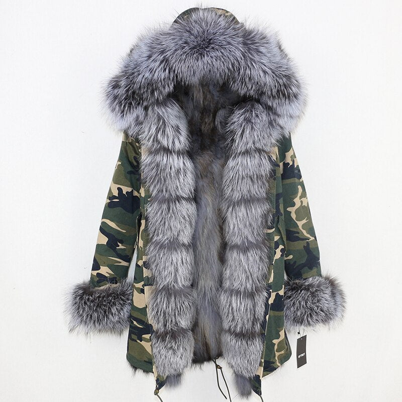 This hooded nylon bomber features the add of a detachable real fur on the hood that can be swapped for a hoodie. The hexagonal logo is sewn at left chest. Zipper fastening. Two slit pockets. Woven ribbed collar, cuffs and bottom hem. Inner lining