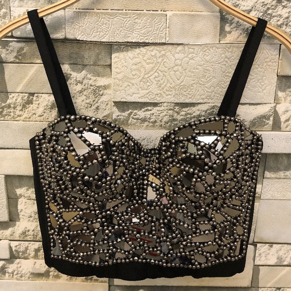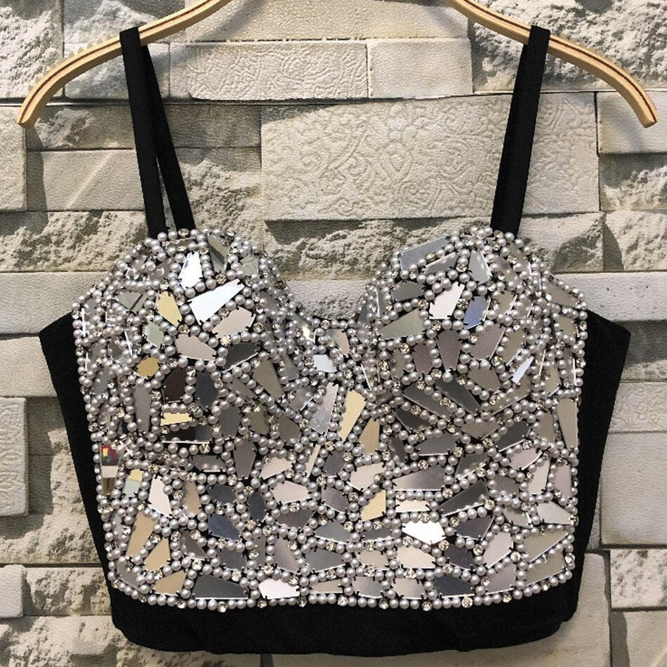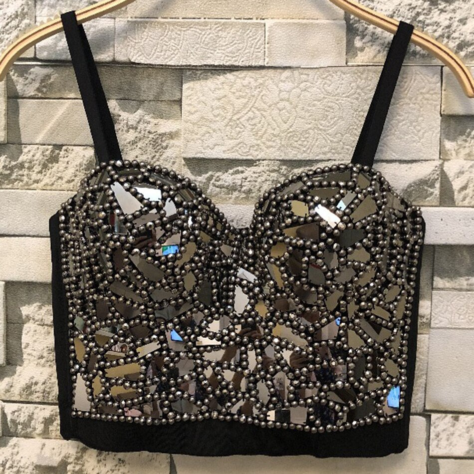 Pisani Maura Collection created to respond to lust and style lovers’ necessities. Attention to materials and production processes is essential. Like this stretch polyester jersey sleeveless top with stretch swarovski inserts. Reminding the corsets from the victorian ages. Two needle stitching hems.