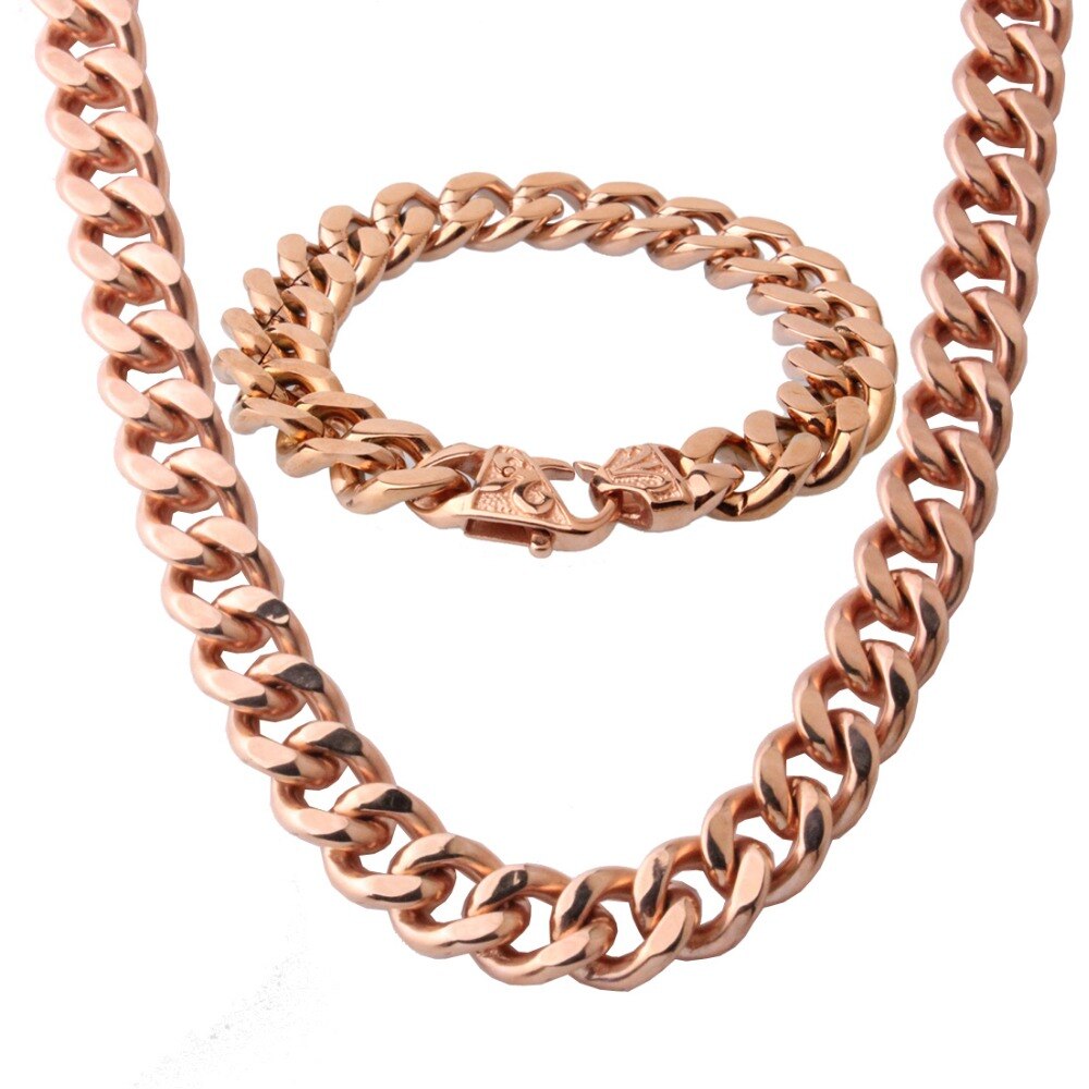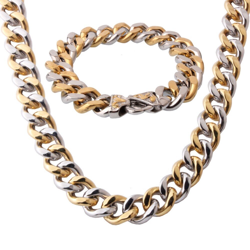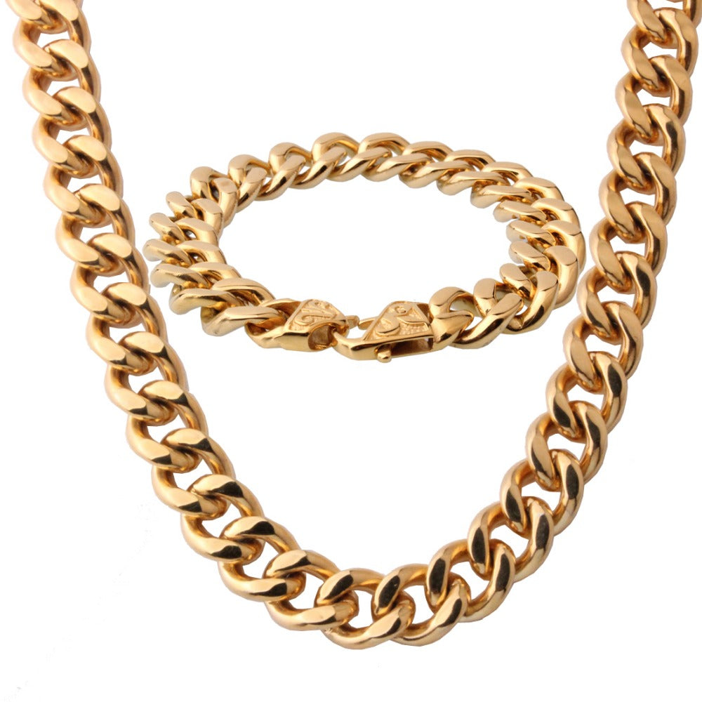The Most Realistic Gold Cuban Bracelet Available. This Solid Stainless Steel Bracelet is IP Gold wrapped THREE times for thick gold coverage all over, even between the links. The Gold wrapping is very thick which gives it a complete, long lasting, solid gold look and heavyweight feel. This Gold Miami Cuban Bracelet features a triple lock clasp, to keep this beautiful bracelet secure on your wrist This is the best you can get without spending thousands on a solid 14K gold Miami Cuban Bracelet. This Gold Cuban Bracelet offers different measures in width.