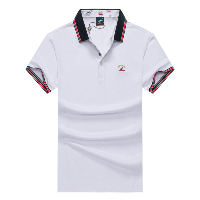 The print of the brand’s lettering is all it takes to turn a plain cotton jersey piqué polo shirt into an object of desire. Two hole buttons fastening collar. Woven ribbed collar and cuffs. Asymmetrical bottom hem with two side slits and two needle stitching. Platinum cut for an ideal fit.
