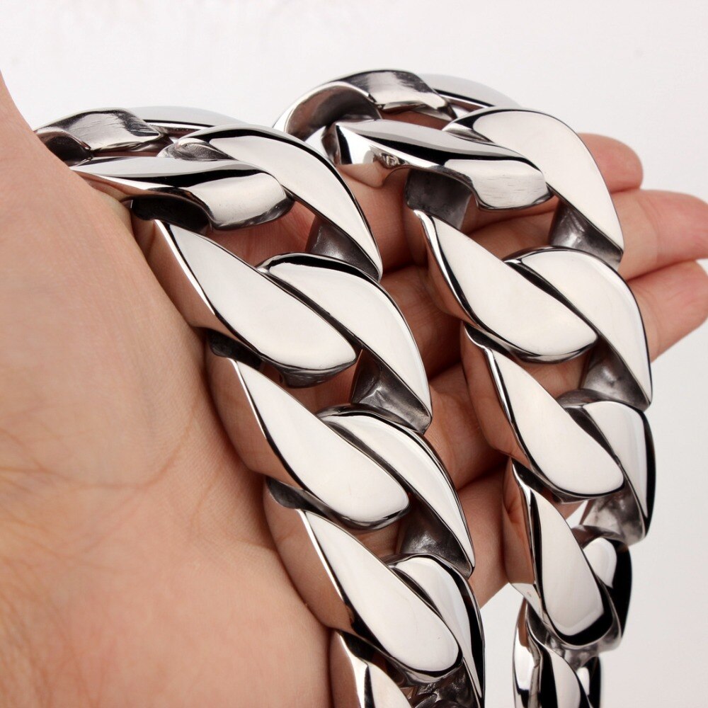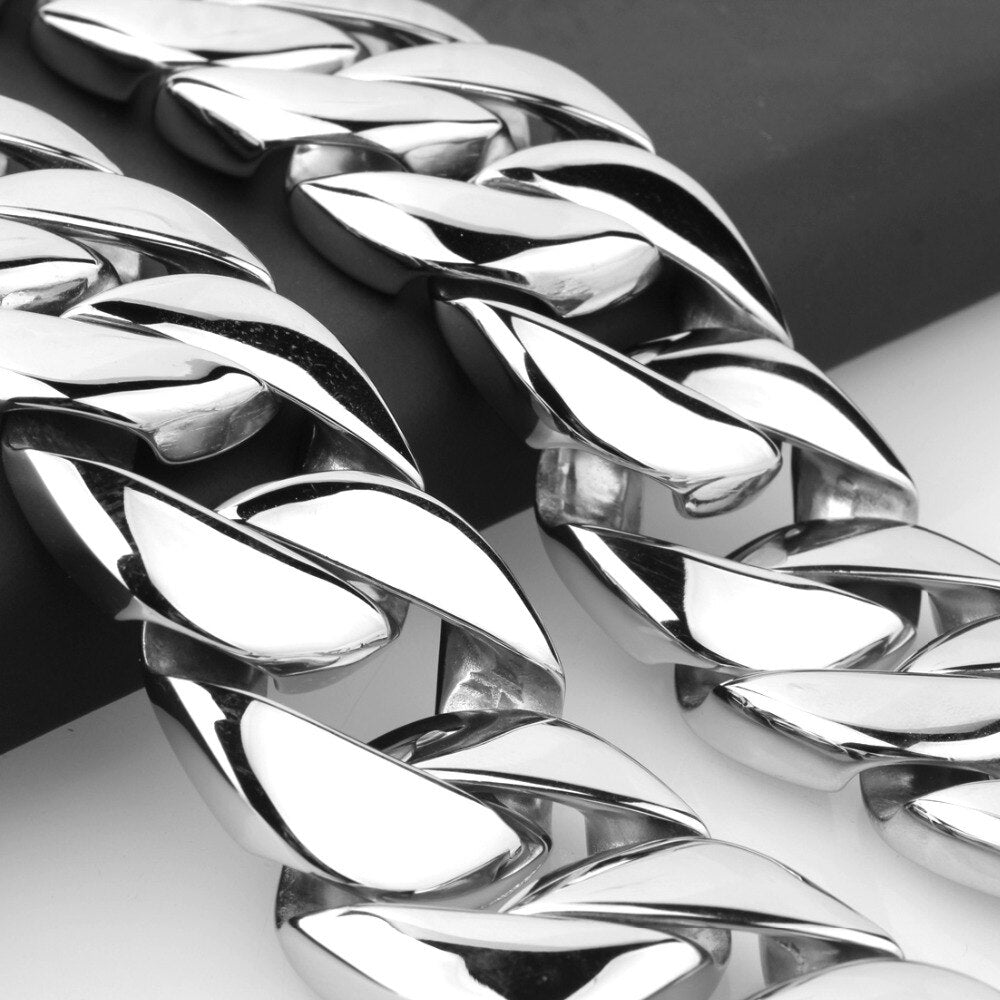 Just Released! The Most Realistic Gold Cuban Chain Available. This Solid Stainless Steel Chain is IP Gold wrapped THREE times for complete gold coverage all over, even between the links. The Gold wrapping is very thick which gives it a complete solid gold look and heavyweight feel. This White Gold Miami Cuban Chain features a triple lock clasp, to keep this beautiful chain secure on your neck. This is the best you can get without spending thousands on a solid 14K White gold Miami Cuban Chain. Measures 24 mm in width and choose your chain length from our menu. Order your best quality Gold Miami Cuban Chain from Pisanimaura.com today as these are selling fast!