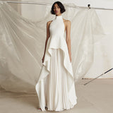 Drapes enriched stretch viscose jersey slip dress. Draped and asymmetric. Straps with decorated drapes. Tight neckband on a sleeveless dress. Invisible zipper fastening at centre back.