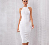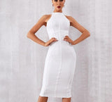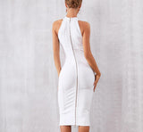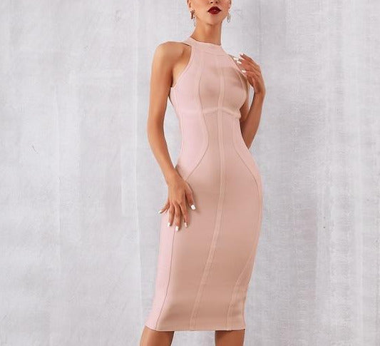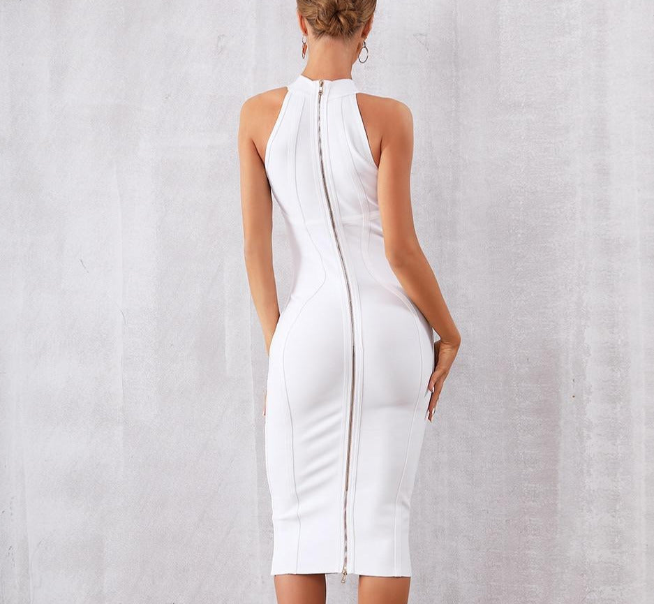 The 70’s glam is brought back by this silk cady long open shoulder dress. Cut off sides. Defining lines throughout the body contour. Zipper fastening at centre back.