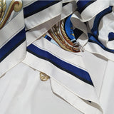 A colorful patterned silk scarf made from sleek silk is the perfect way to update any basic look. 130 cm x 130 cm
