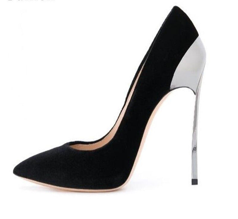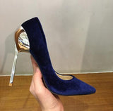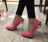 The iconic symbol of the Maison is the key feature of these suede pumps. This version is indeed “skewered” on the iron stiletto heel. Genuine leather sole. Inner lining. Heel: 120 mm.