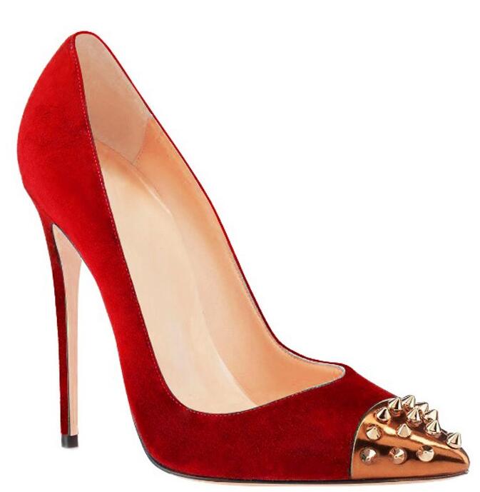 These classic velvet pumps feature a Golden Stud covered toecap. Laminated metal stiletto. Nappa footbed. Genuine leather sole. Heel: 120 mm