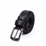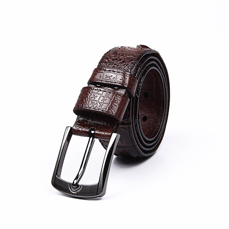 Leather Belt with crocodile pattern embossed on the front. Buckle adjusting