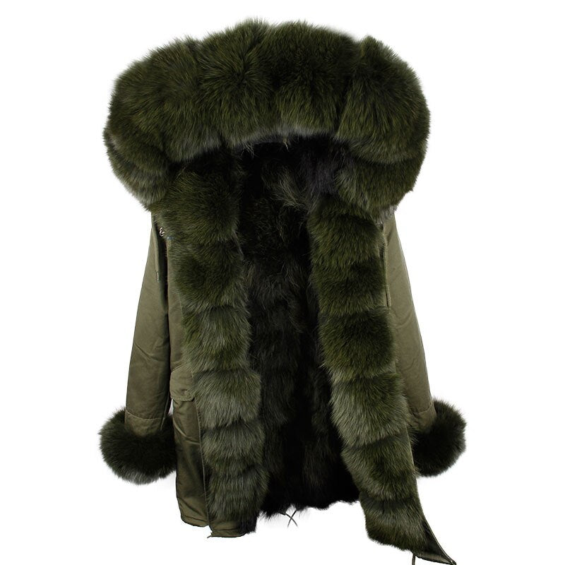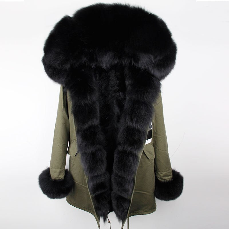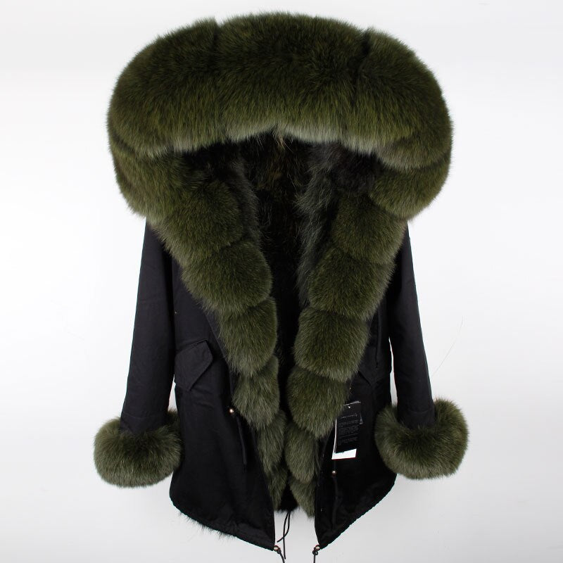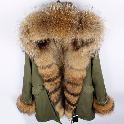 This hooded nylon bomber features the add of a detachable real fur on the hood that can be swapped for a hoodie. The hexagonal logo is sewn at left chest. Zipper fastening. Two slit pockets. Woven ribbed collar, cuffs and bottom hem. Inner lining