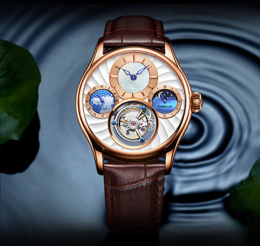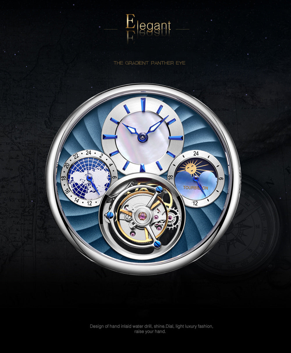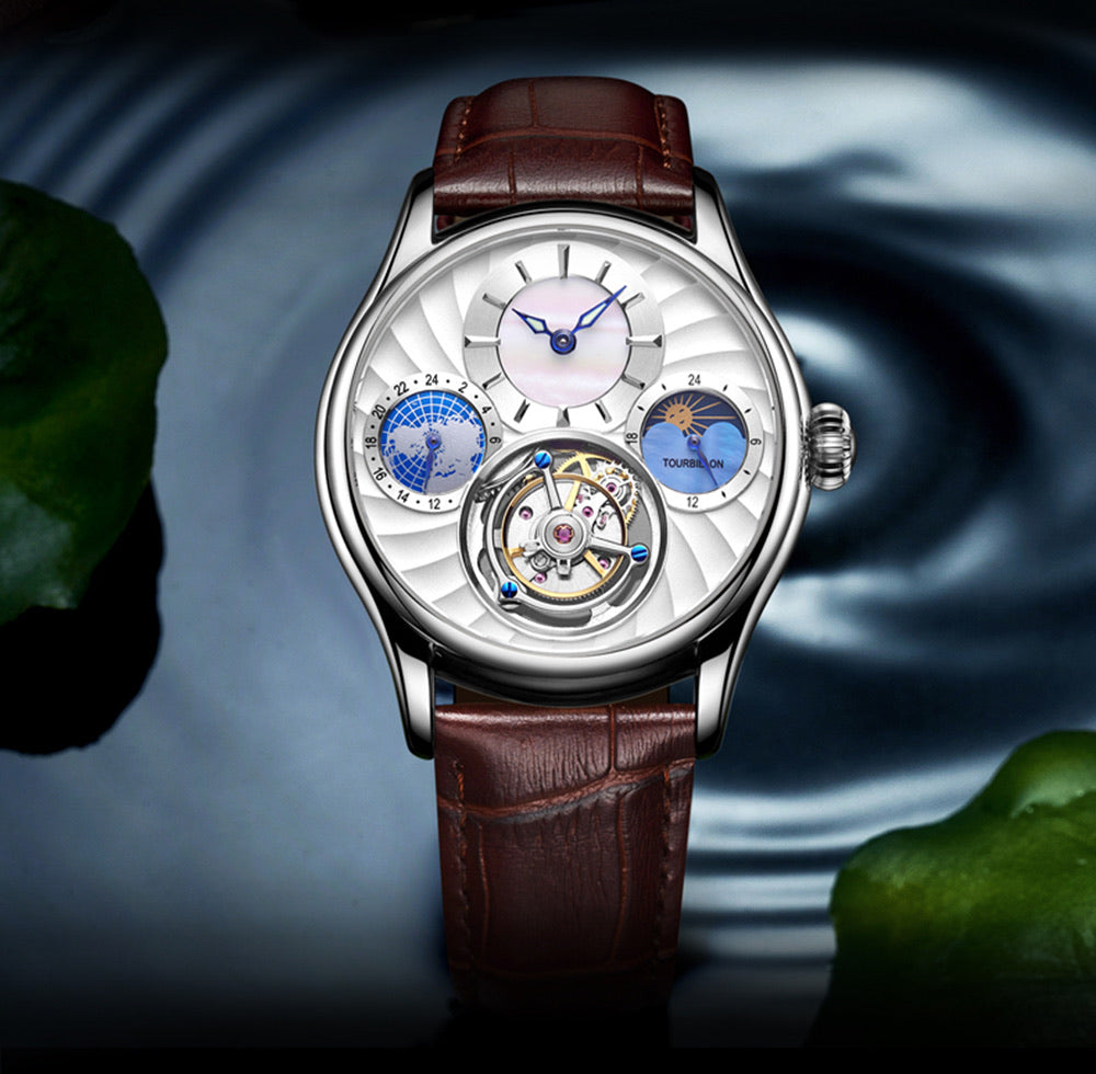 The tourbillon watch is the high form of art in the watch industry and the top collection of Pisani Maura's timepieces. the Tourbillon in particular is a watch speed governor invented in 1795 by the Swiss watch master, Mr. Louis Breguet. French Tourbillon (also known as Tiberon), with the meaning of "whirlpool", refers to the mechanical watch equipped with "rotating escapement speed governing mechanism". The tourbillon is a combination of transliteration and free translation. Baodi invented the tourbillon mechanism to correct the error caused by gravity on the clockwork. Ordinary mechanical watches, due to the influence of spring tightness, metal fatigue and gravity, the error is large. The principle of the tourbillon is basically to design the balance spring, fork lever and escapement system to operate on the same axis. The flywheel rotates continuously during operation to reduce the impact of gravity. Since the watch is not placed vertically for a long time, the tourbillon device has no effect on the watch as much as a watch. Today, almost all of the watch core raw materials and key parts can only be produced in Switzerland. The mechanical watch loaded with the tourbillon movement has always been the darling of the collection. Proportunity of several currencies.