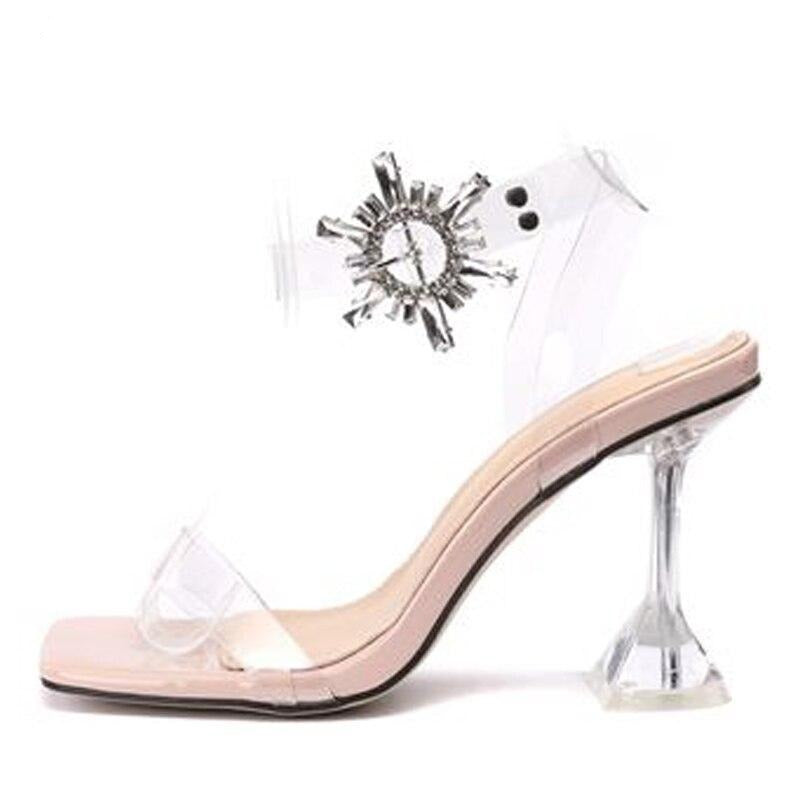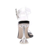 Patent strap sandals. Hexagonal buckle ankle strap. A jewel decoration on the stiletto heels. Dappled footbed. Heel: 120 mm.