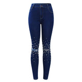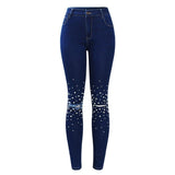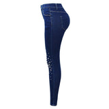 Decorative rhinestones are the key feature of these stone washed stretch denim 5 pocket jeggings. The brand’s metal lettering is featured on a leather patch sewn on the back of the waistband. Single metal jewel button fastening. Zip-up bottom: 28 cm. Fit: High Waist.