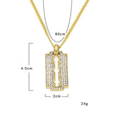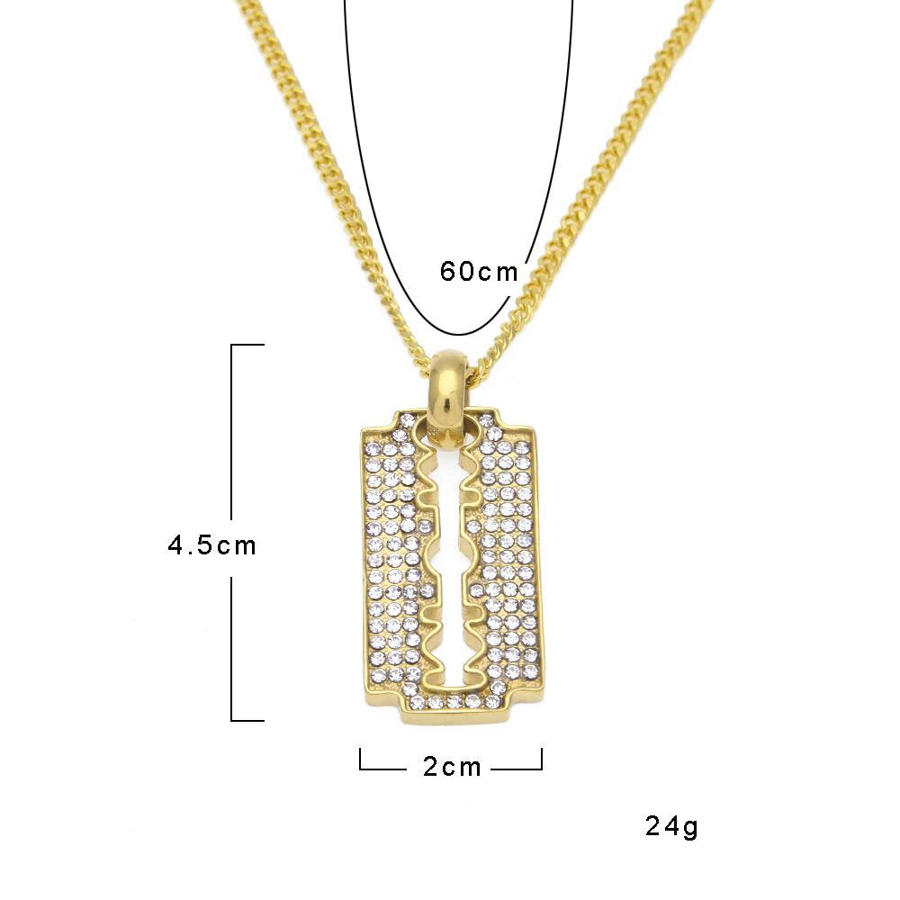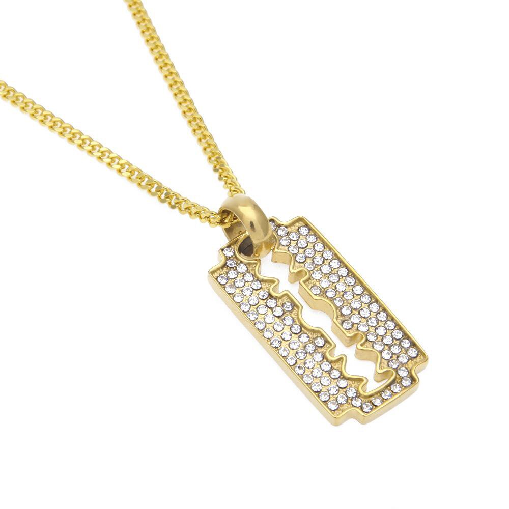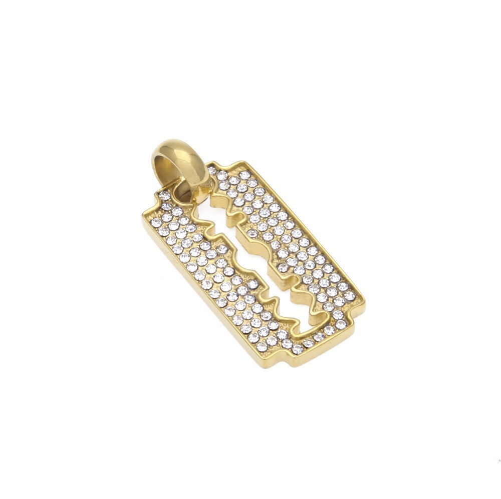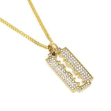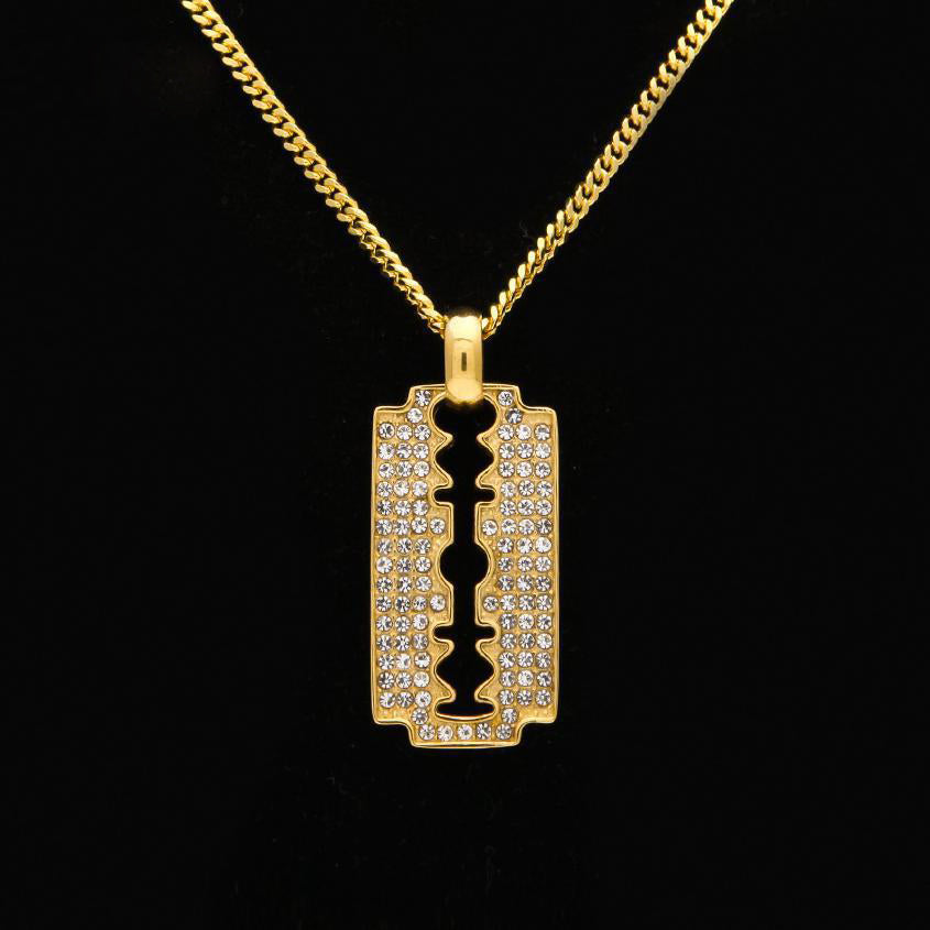 Classic Razon Blade iced out. Features a secure Triple Lock Clasp with the Hip Hop Bling Logo. Highly detailed with intricate details and stone setting. All stones are VVS Simulated Diamonds that are prong set.