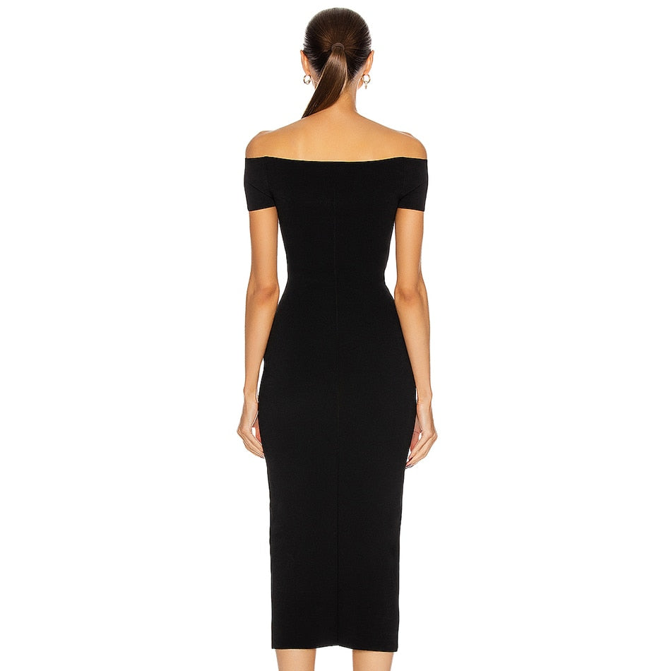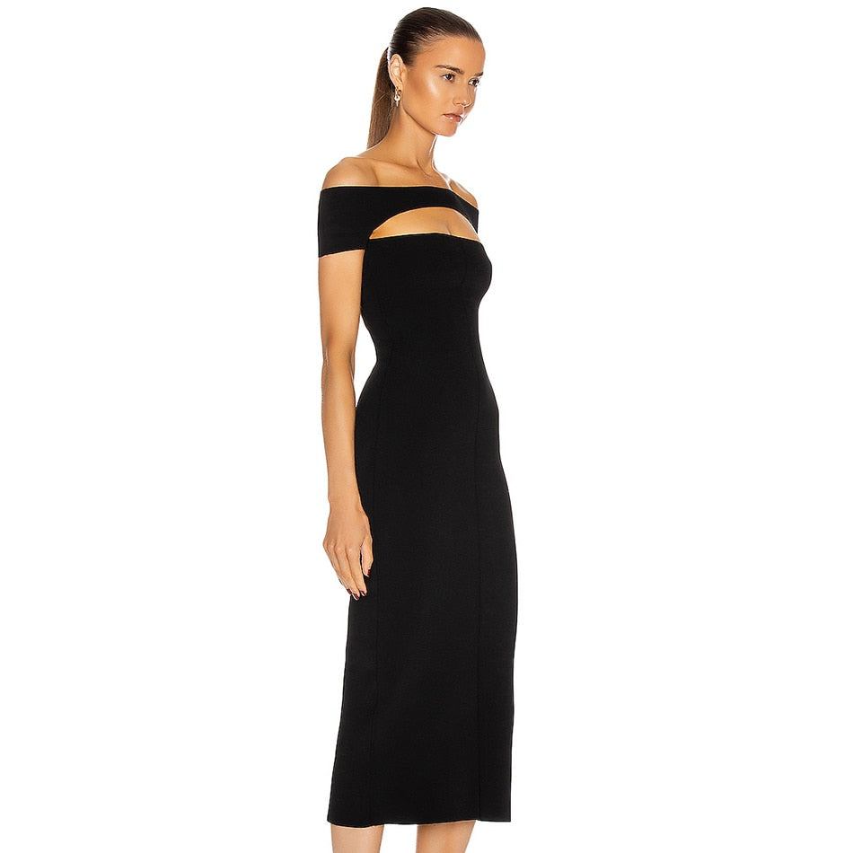 Dappled long evening halter dress with. Hollowed and straight drape at low neckline. The waist is highlighted by an engulfing tight design. Straight skirt with a low side slit. Concealed zipper fastening at centre back. Body lining.