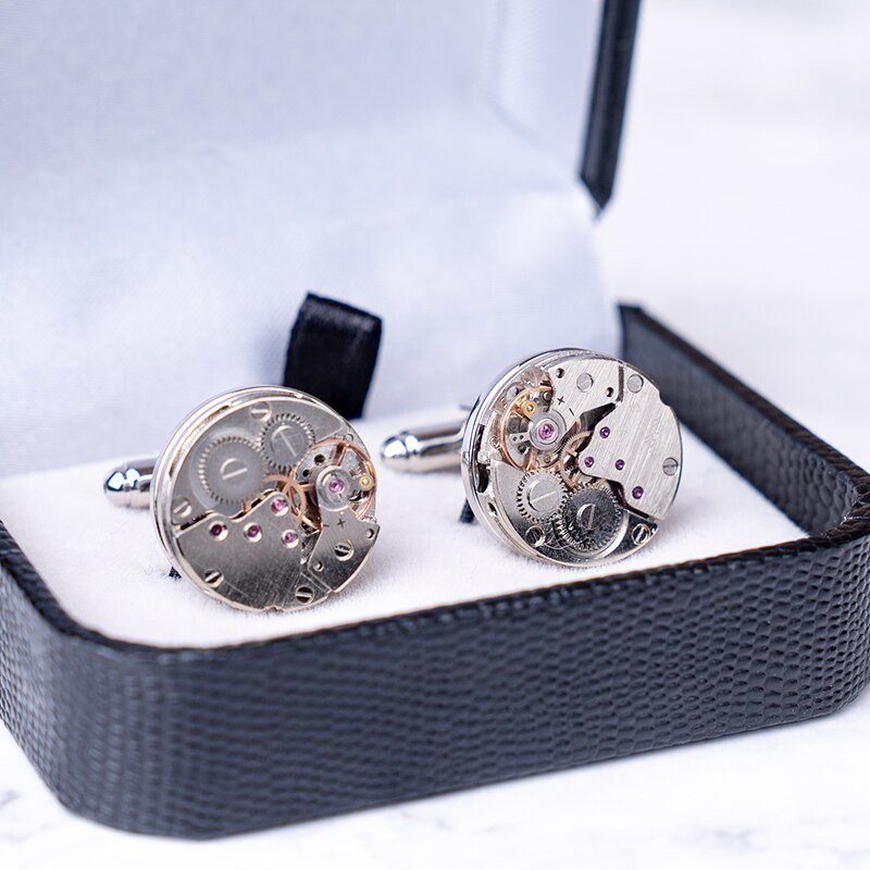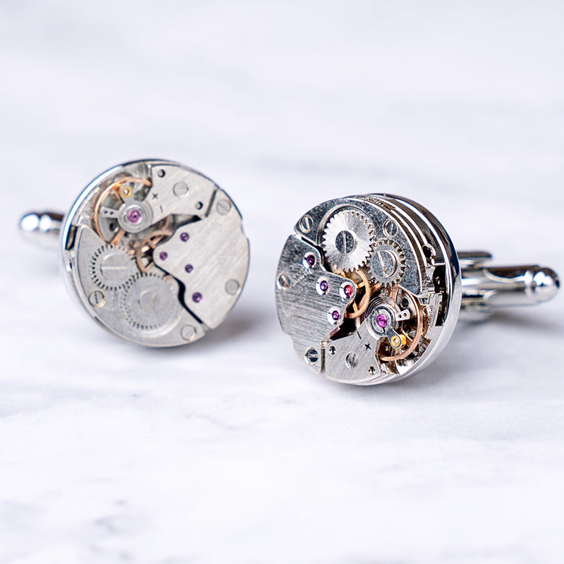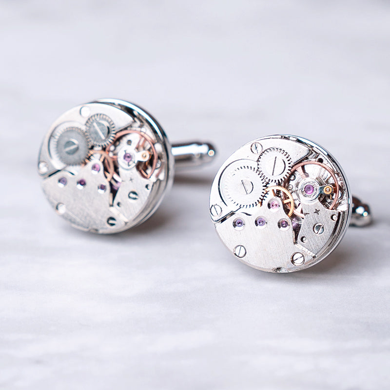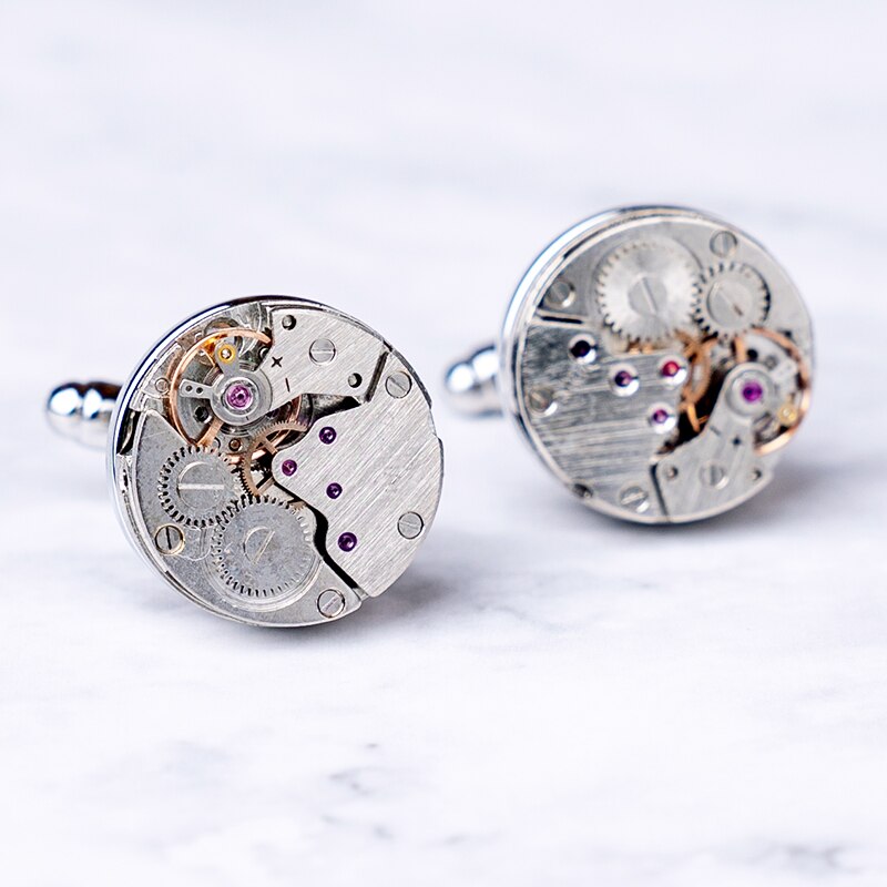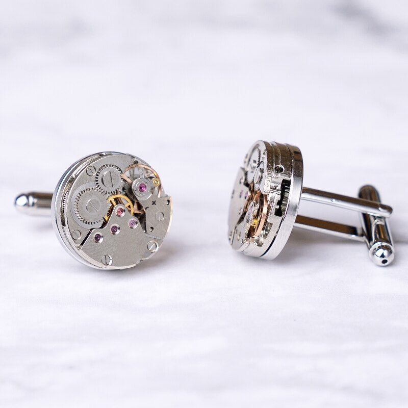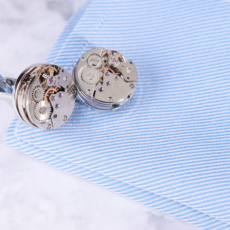 The classic knot designed masterfully in a gold tone plated base metal construction. Conventionally handsome and wearable with any shirt and tie, the Gold Knot Cufflinks are the perfect way to accent your french cuffs in style. Cufflinks don’t get any fancier than this. These watch cufflinks show you the inner workings of a functioning kinetic watch that is made of stainless steel with gold plated vintage watch parts. It is truly astonishing to see how much detail goes into making a watch. Approximately 3/4" in diameter Stainless steel with gold plated vintage watch parts Kinetic watch movements Bullet back closure