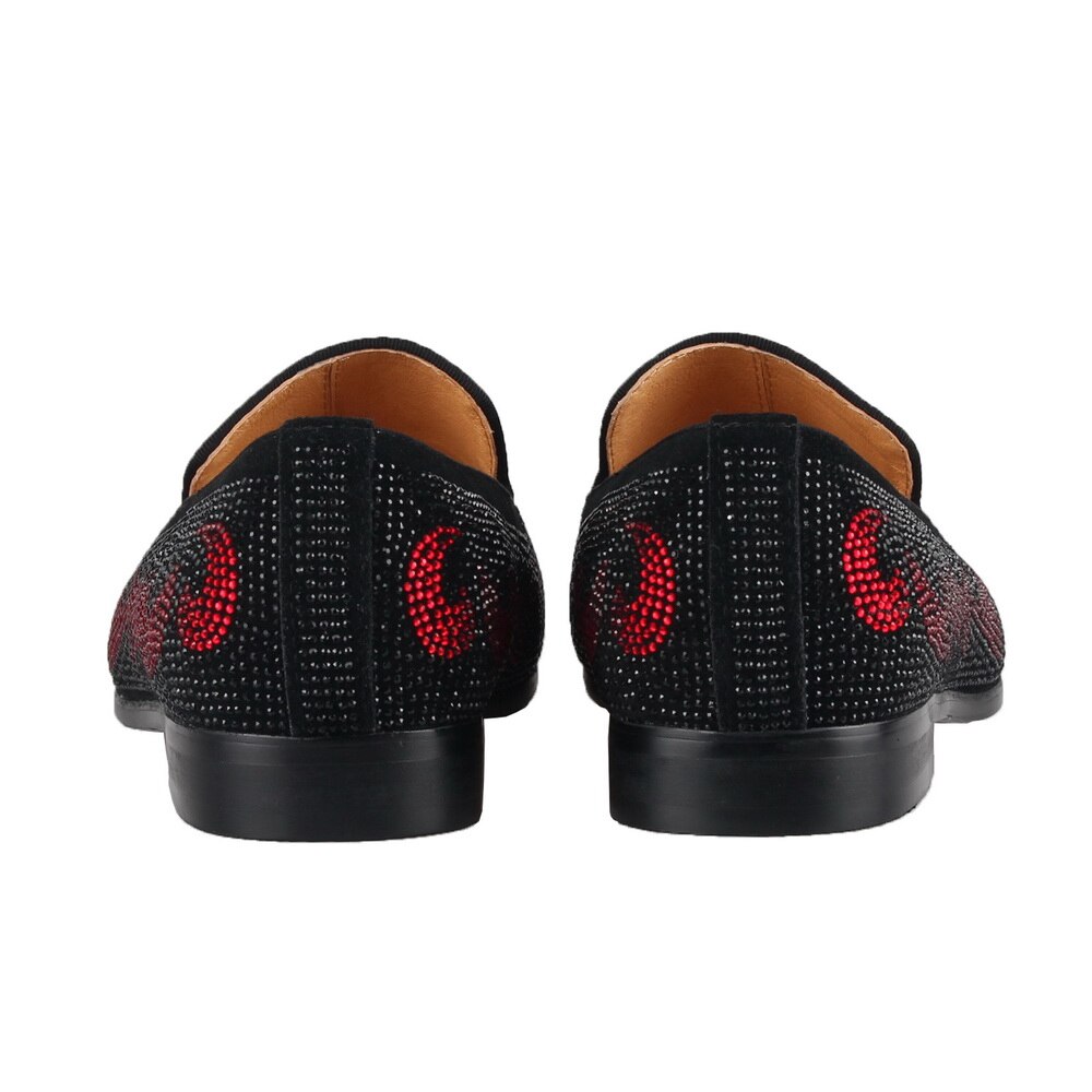 Pisani Maura can turn anything into luxury. These pop-rock bicolor suede loafers are proper jewel shoes as they are completely encrusted with crystals. Slide-safe rubber sole. Nappa lining and removable insole.