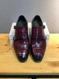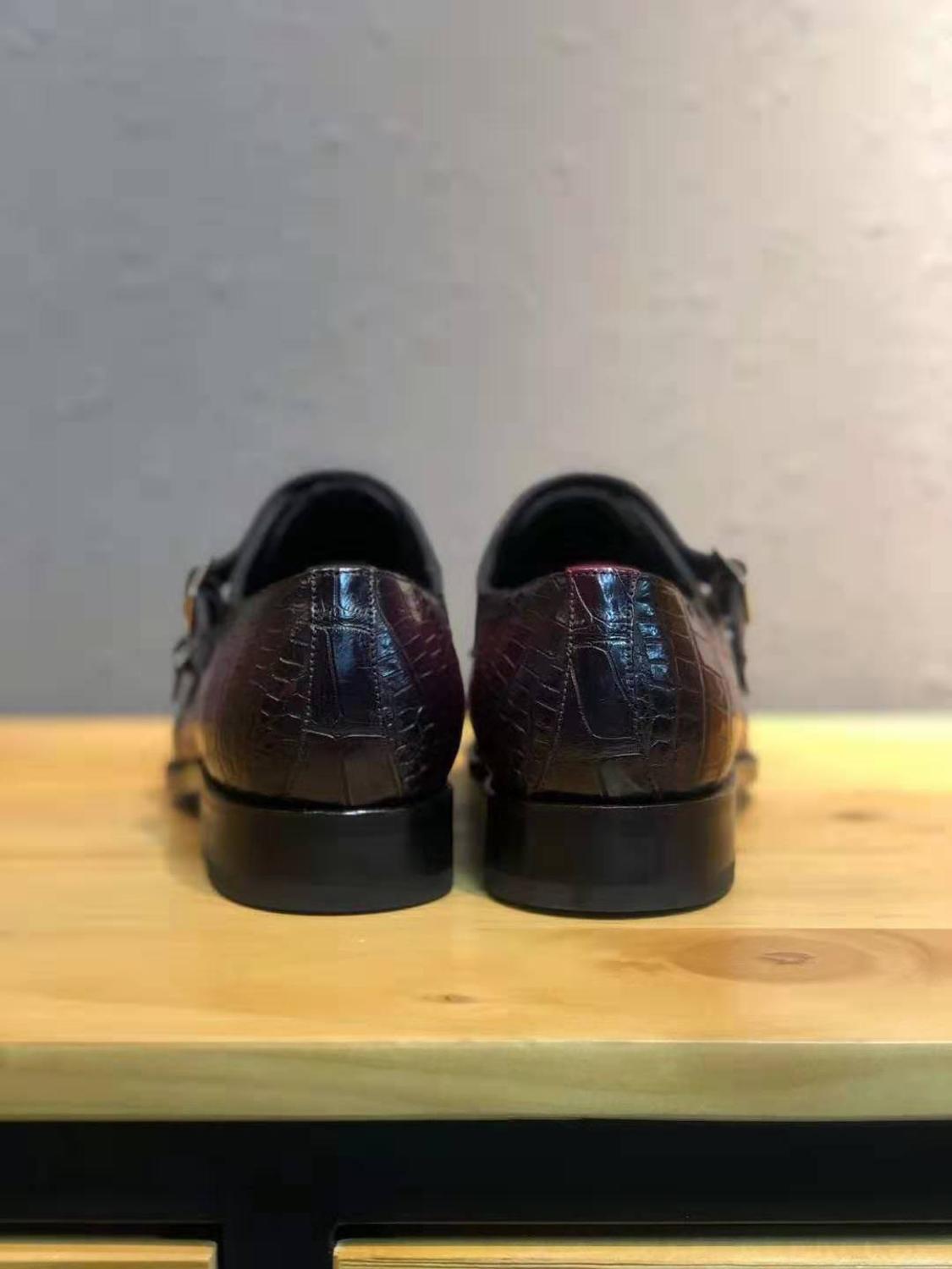 The classic brushed genuine crocodile lace-up Oxfords are lightened up by the monk strap. Genuine leather sole. Genuine leather inner lining.