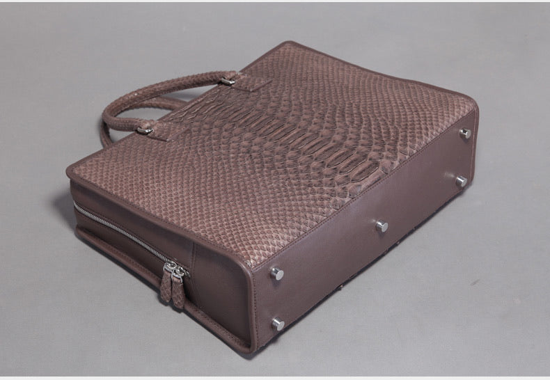Genuine python large crossbody bag with printed lettering. Adjustable python strap. Zipper fastening. Zip-up outer pocket. Leather inner lining. Measures: h 29cm, w 40cm d 7,5cm