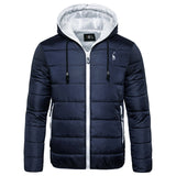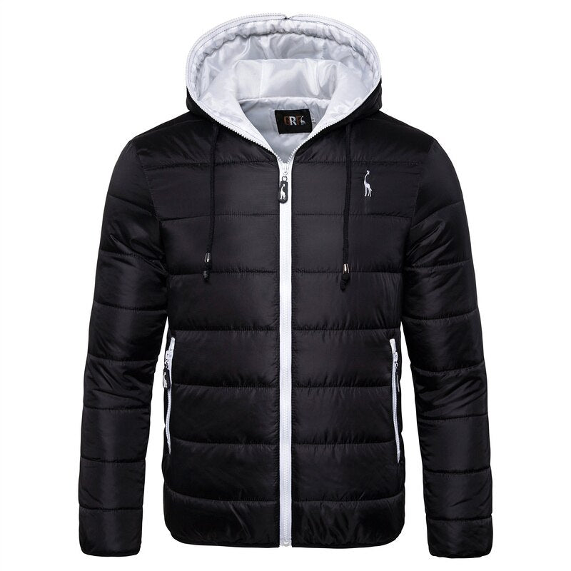 The main feature of this hooded nylon bomber is the contrast between the colour of the bomber and the colour of the zip. The terry-stitch embroidery of the brand’s lettering is featured on the patch sewn at yoke. Zipper fastening. Woven ribbed collar, cuffs and bottom hem with striping. Padded and quilted lining.