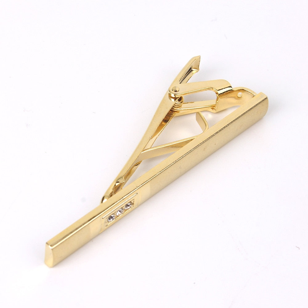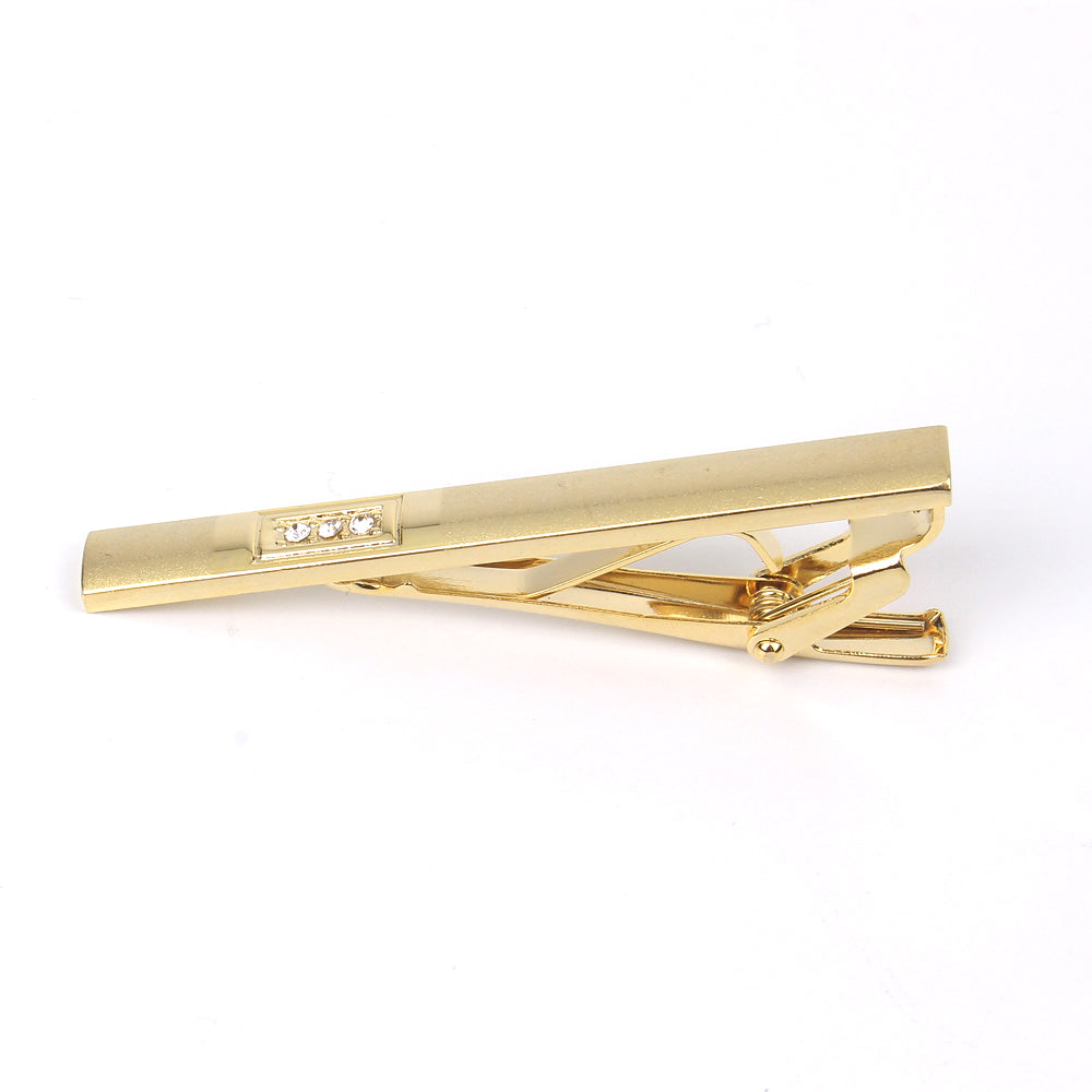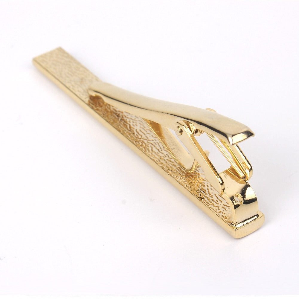 Hold your tie in place with this gold-tone plated tie clip with a simple etched line design. Approximately 2 1/4" in length Gold-tone plated base metal Hinge back closure