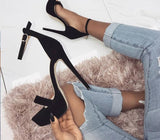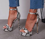 Satin and suede platform sandals with stiletto heels and platform. Patent leather footbed and sole. Crossing straps and buckle ankle strap. Platform: 40 mm. Heel: 140 mm.