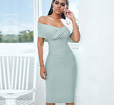 This Roma stitch, strapless sheath dress is decorated all-over with the brand’s monogram. Zipper fastening at centre back. Drapes form a small sleeve effect.