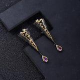 Elegant drop down earrings with amazing shine. These stunning drop down earrings feature graduating stones and ends in a brilliant cut stone. They are made out of genuine 925 sterling silver, finished with a layer of rhodium to reduce tarnishing and give it the deep shine of white gold jewelry.