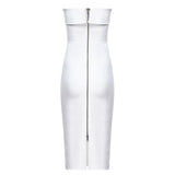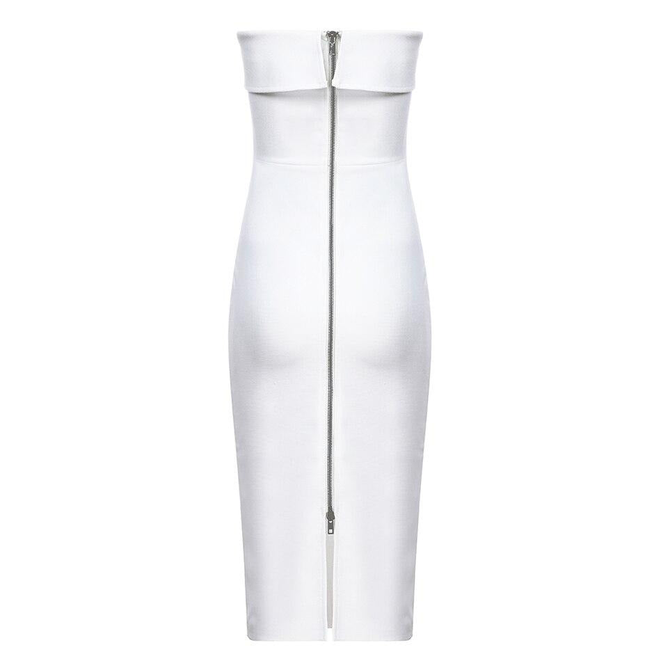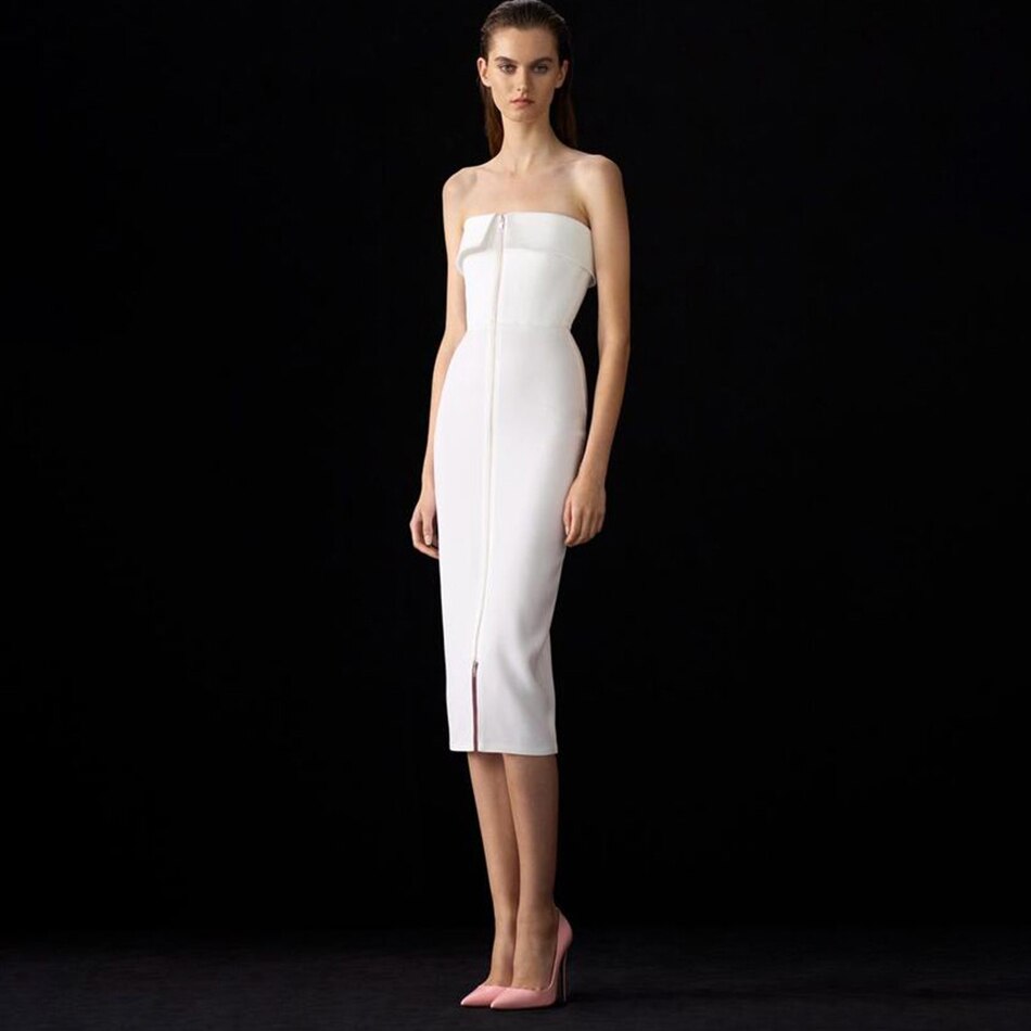 Simple yet sumptuous. This is what better describes this stretch viscose crepe strapless sheath dress. The effect of a tulle draped collar dress adds to the plain design that Pisani Maison touch that was missing. Zipper fastening at centre back.