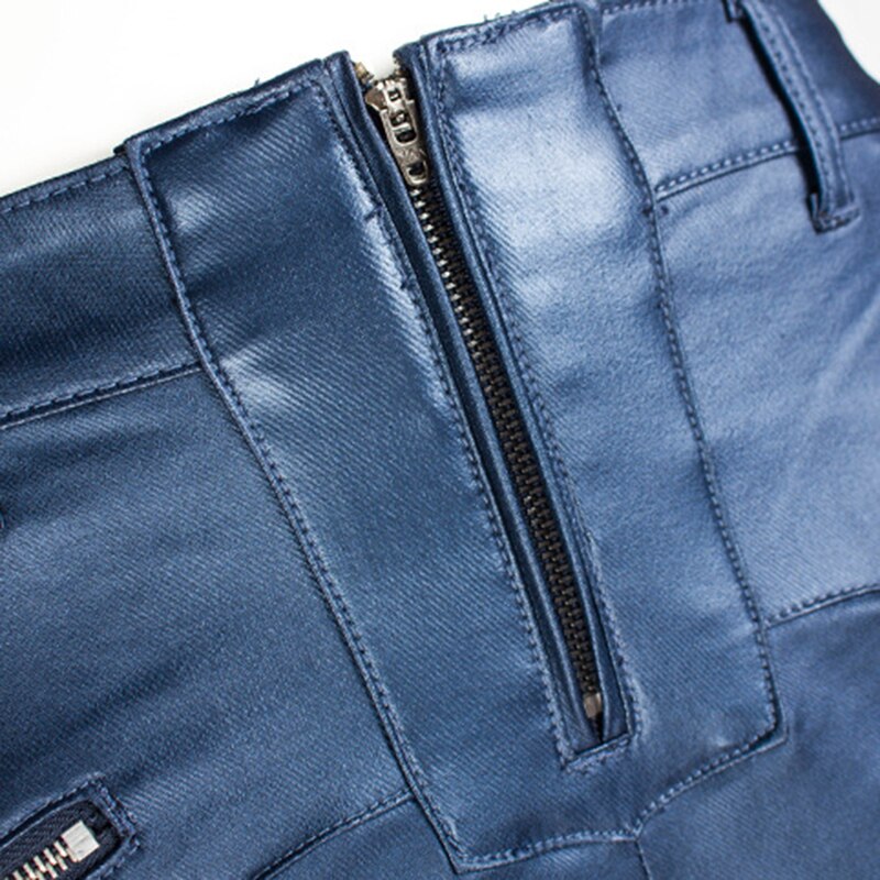 Decorative zippers are the key feature of these stone washed stretch denim 5 pocket jeggings. The brand’s metal lettering is featured on a leather patch sewn on the back of the waistband. Single metal jewel button fastening. Zip-up bottom: 28 cm. Fit: High Waist.