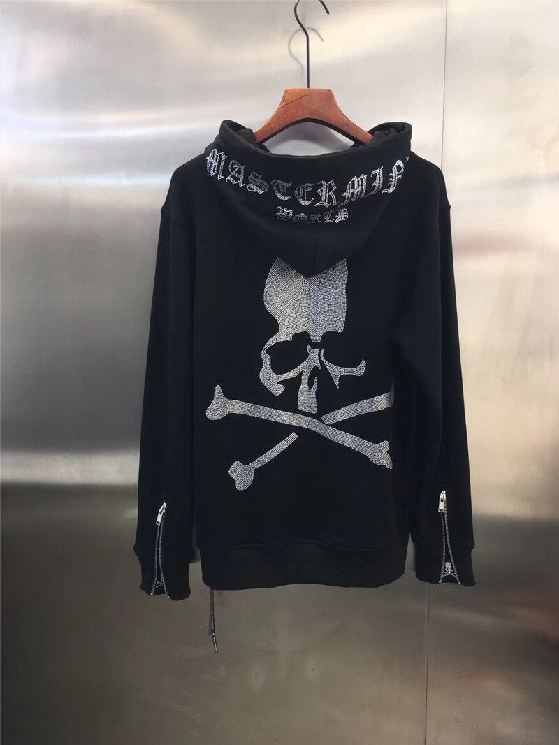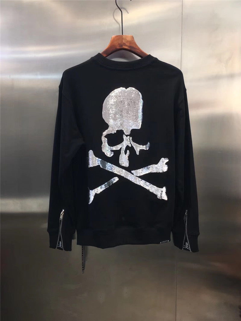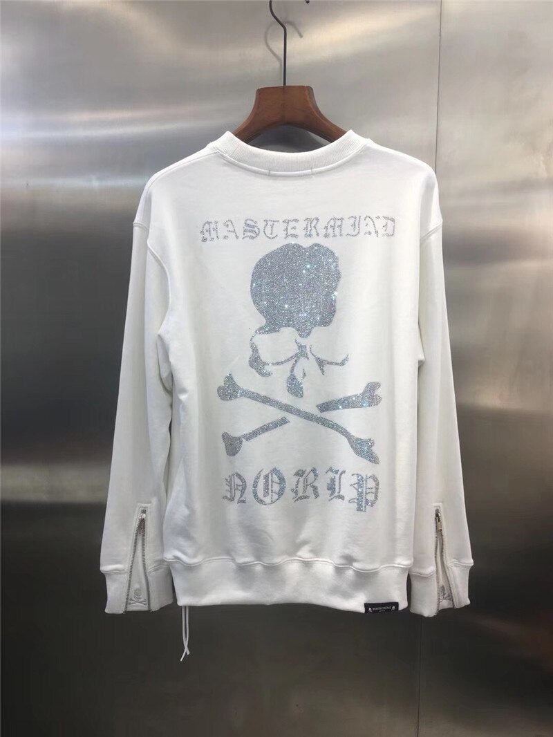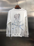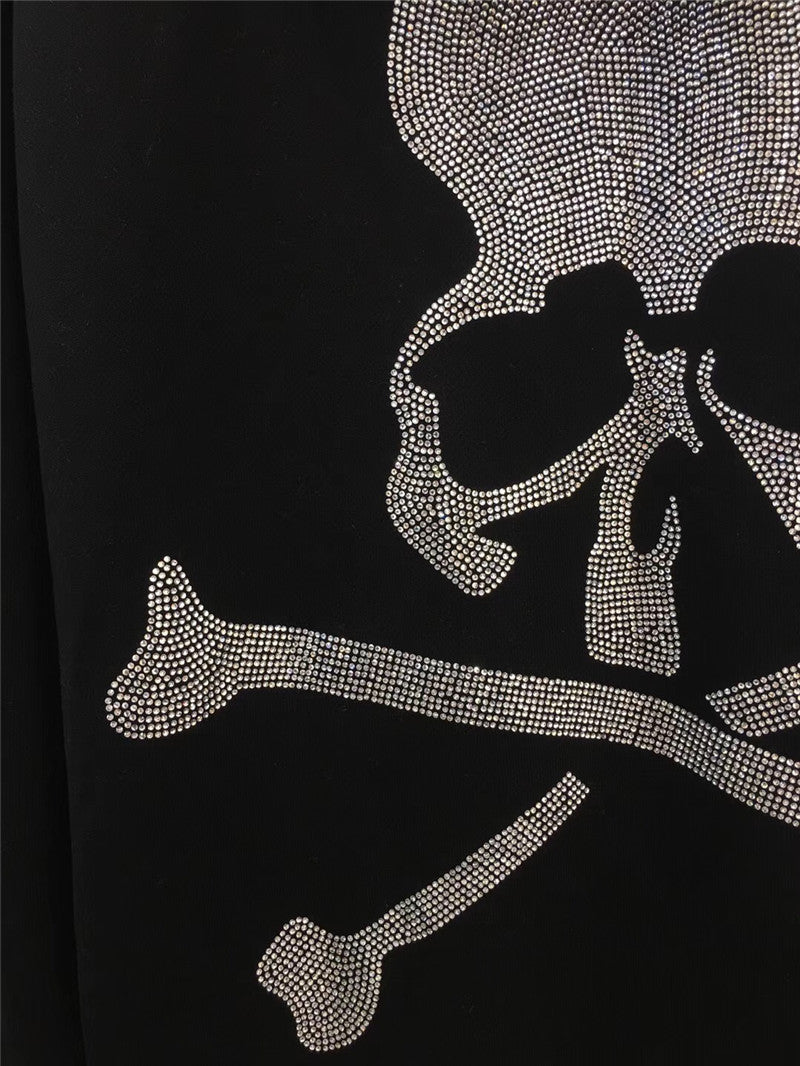 The Maison Pisani’s iconography features in every season the iconic skull reinterpreted in a new and original version. Like on this cotton fleece hooded sweatjacket where it is featured, made of rhinestones, on the back together with the brand’s lettering. The hexagonal logo is sewn at left chest. Zipper fastening. Two pouch pockets. Ribbed hems.
