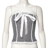 This corset features a large ribbon band on the neckline. Mother-of-pearl button fastening.