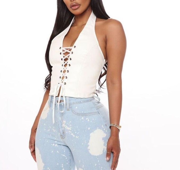 Pisani Maura created Alice In Wonderland, a special capsule collection to demonstrate that this "romantic" item could reveal a very "aggressive" side. This bandeau top, made of pink latex, is enriched by a frontal interlace fastening string. Zipper fastening at centre back.