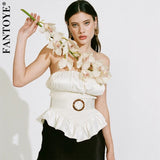 The new roaring twenties are embodied by this soft viscose jersey petticoat wrap top. The elaborate draping draws the focus on the waist that also features a belt with jewel buckle. Back-bandeau straps.