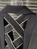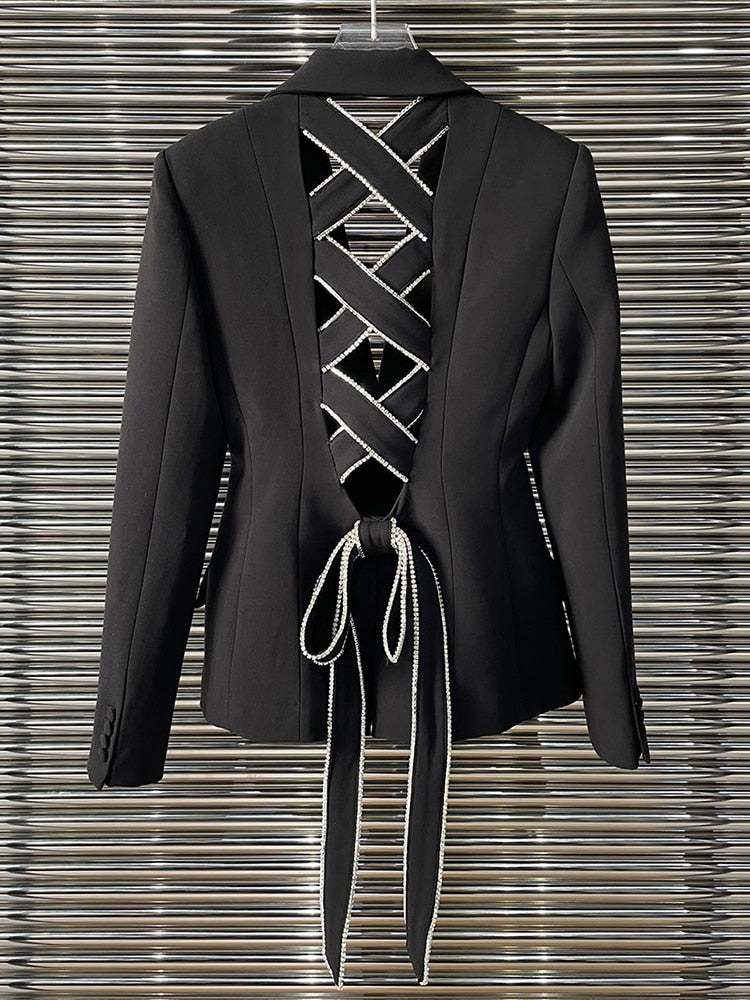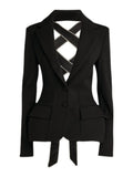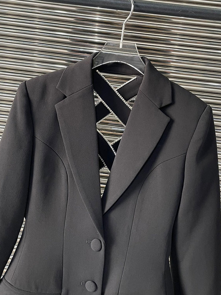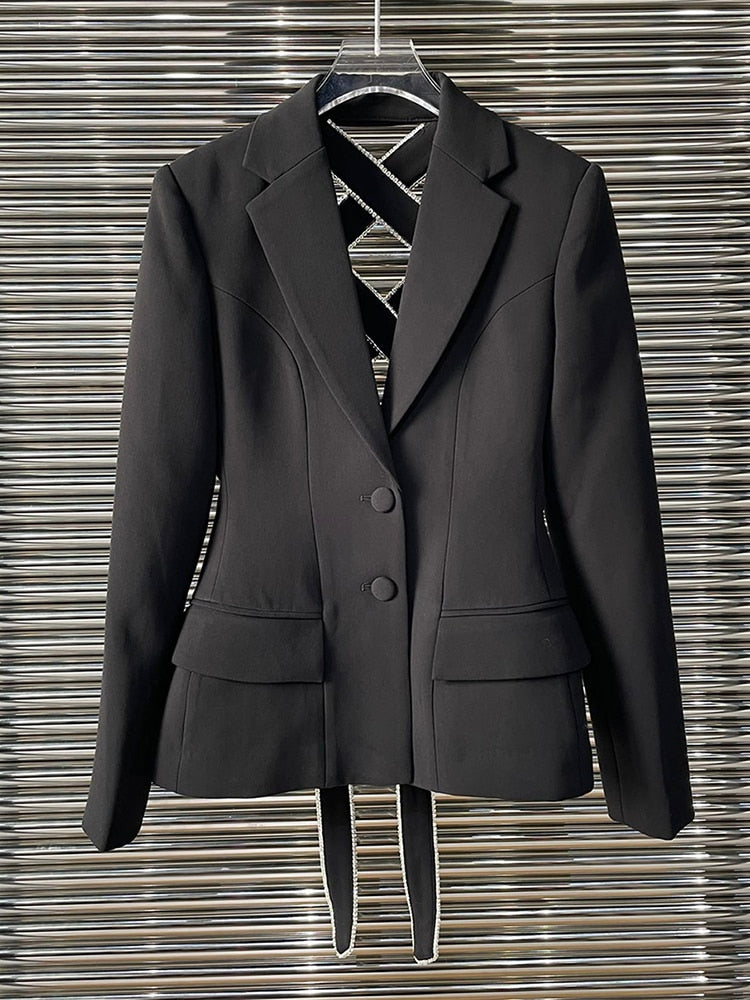 The classic and simple lines of this viscose blend sand cady single-breasted jacket are overturned by retro details. single-breasted blazer. Tight-fit, the concave shoulders and the large peak lapel remind of Bianca Jagger’s 70’s style. Jewel buttons fastening. Two flap pockets. Band fastening on the back.