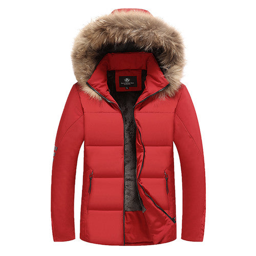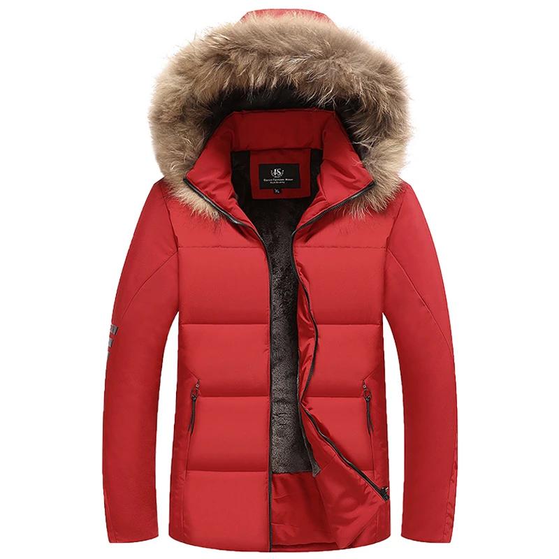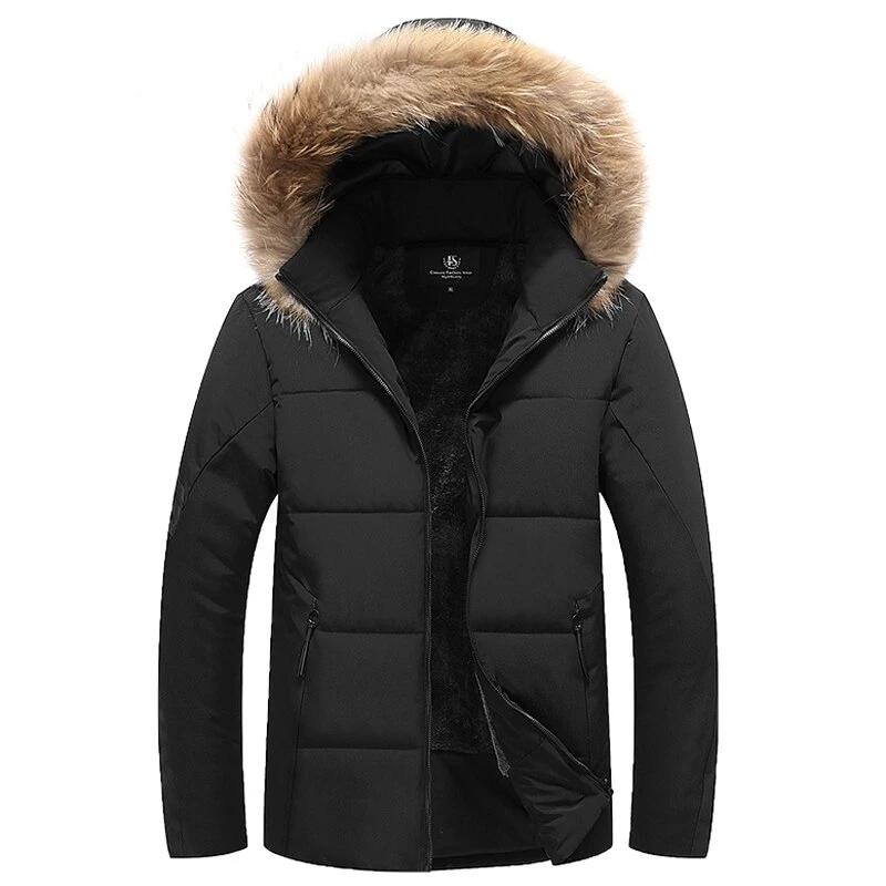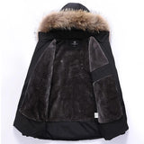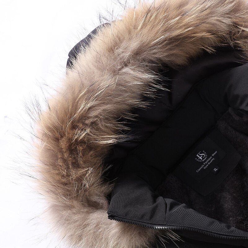This padded nylon satin hooded jacket is decorated with leather inserts. The brand's lettering at left chest. Zip fastening with press-stud placket. Two patch pockets with flap and two zip-up ones. Fox fur trimmed hood. Ribbed cuffs and collar. Padded and lined with sheep fur.