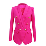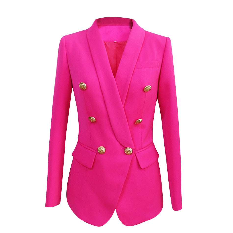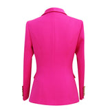 The classic and simple lines of this viscose blend sand cady double-breasted jacket are overturned by retro details. Double-breasted blazer. Tight-fit, the concave shoulders and the large peak lapel remind of Bianca Jagger’s 70’s style. Metal jewel buttons fastening. Two flap pockets. Jungle-print lining.