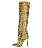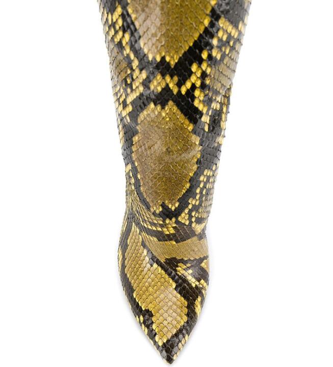 The Elegance is one of the most iconic boot models from the Maison Pisani. This season, it is inspired by nights at the Palace, a famous 1980's Parisian nightclub. Crafted entirely in genuine calfskin, it is mounted on an 85mm heel which lifts the leg with audacity. Totally python embossed and printed