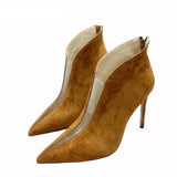 Rock vibes for these suede booties. Zip-up fastening on the back. fully lined iron stiletto. Nappa footbed. Genuine leather sole. Heel: 100 mm.