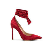 The iconic symbol of the Maison is the key feature of these suede pumps. This version is indeed knot tied on the front. Genuine leather sole. Inner lining. Heel: 120 mm.