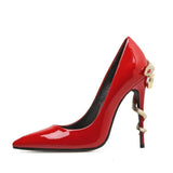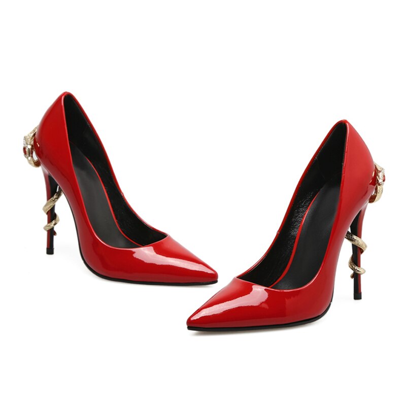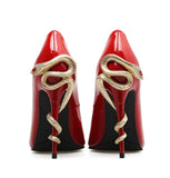A classic but stylish leather reinterpretation by the Pisani Maison.Vivid and ever changing tonality of colour define this unique piece. Lined iron stiletto with clinging snake. Inner lining. Genuine leather sole. Heel: 120 mm.