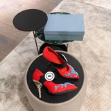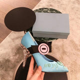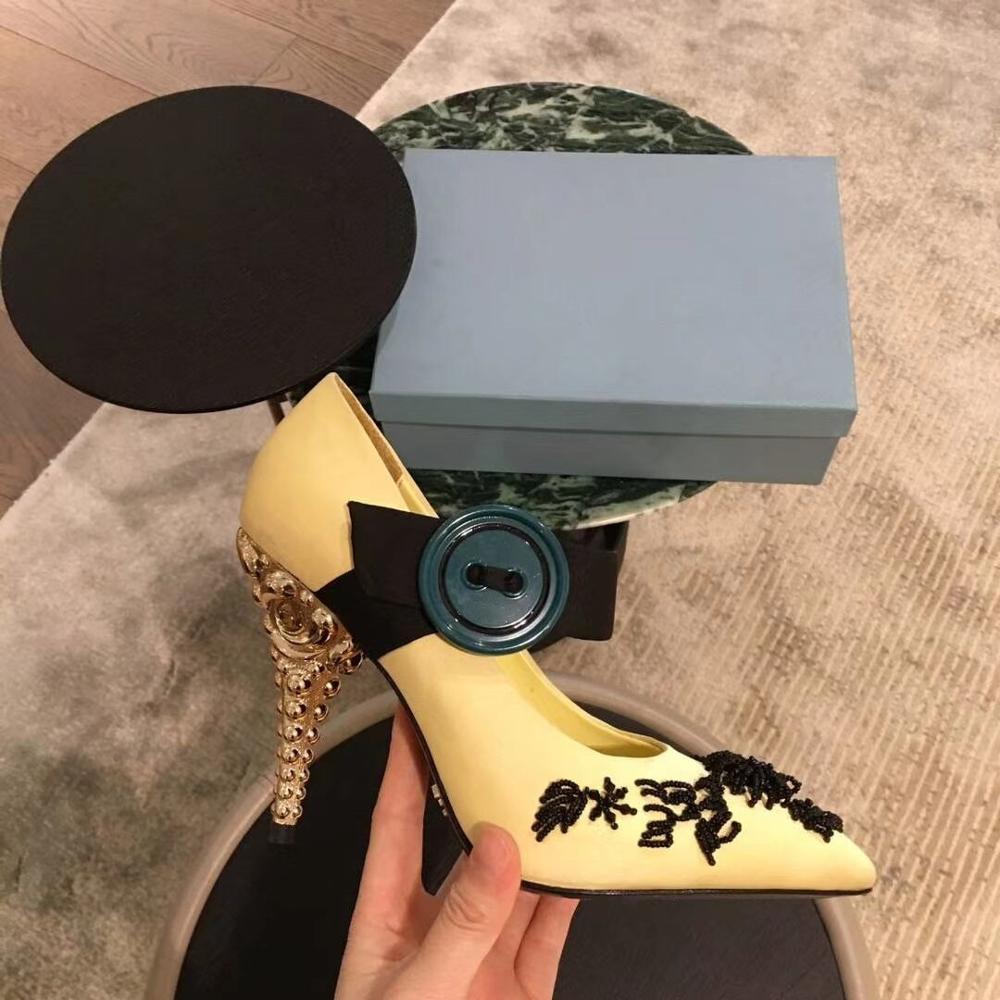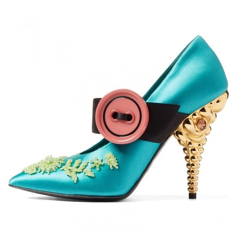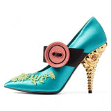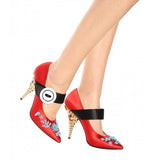 A classic but stylish embroidered reinterpretation by the Pisani Maison. Embroidered Toe Cap. Large Button on the belt. Vivid and ever changing tonality of colour define the stiletto with metal fantasies. Inner lining. Genuine leather sole. Heel: 80 mm.