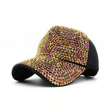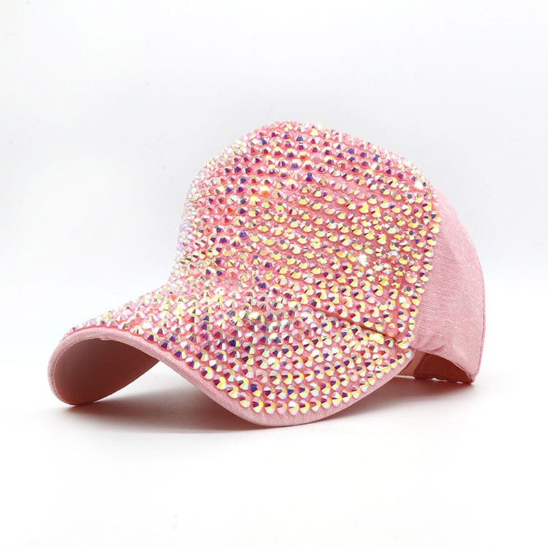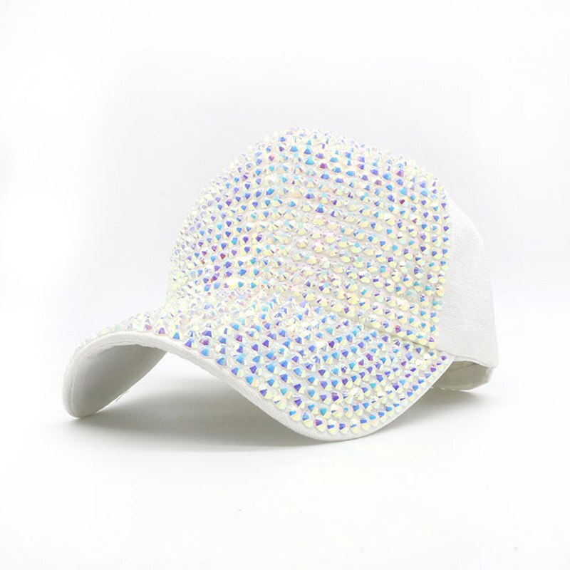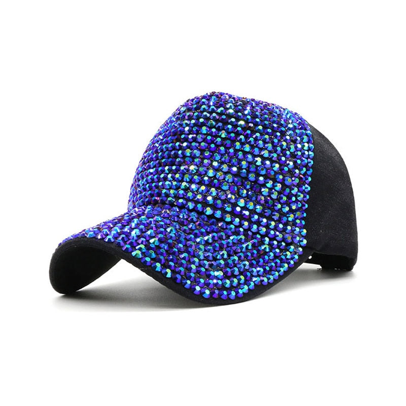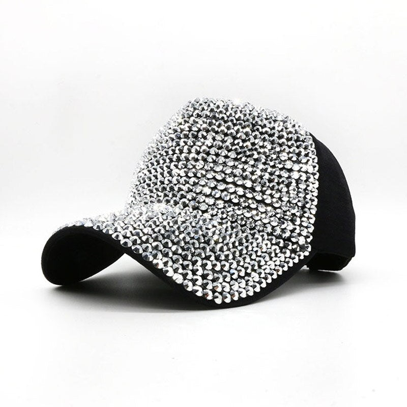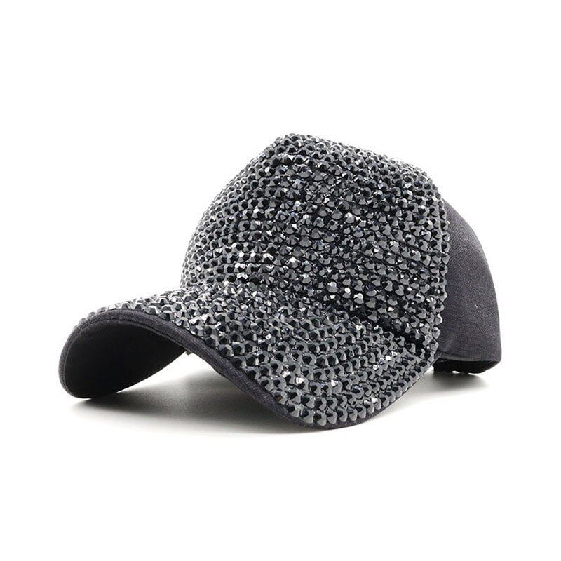 Cotton gabardine baseball cap with crystals embroidered on the front. Buckle adjusting strap. Unlined. weight: about 130 g Head circumference: 55-59 cm (21.7-23.3 inches)