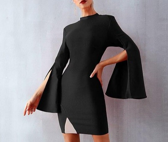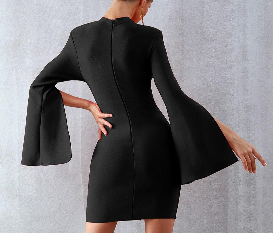 Pisani Maura created Royale, a special capsule collection to demonstrate that this "romantic" model could reveal a very "aggressive" side. The spaghetti dress, has a Korean neckline. Zipper fastening at centre back that defines the fit. Extremely wide and opened sleeves after the elbow for an 80's look.