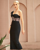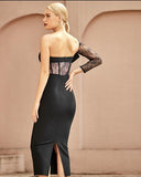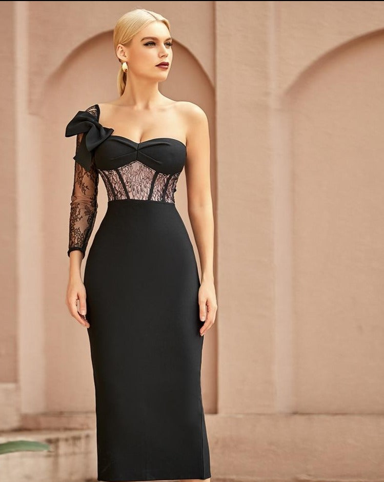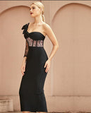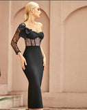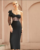 One Shoulder Lace Bodycon Bandage Dress Long Sleeve "Celebrity"