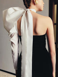 The 1970’s glam is featured on this dress. Plunge back and hook fastening neckband with sleeve incorporated and puff shoulder design. Tight fitting bodice and soft and wide skirt. Zipper fastening at centre back.